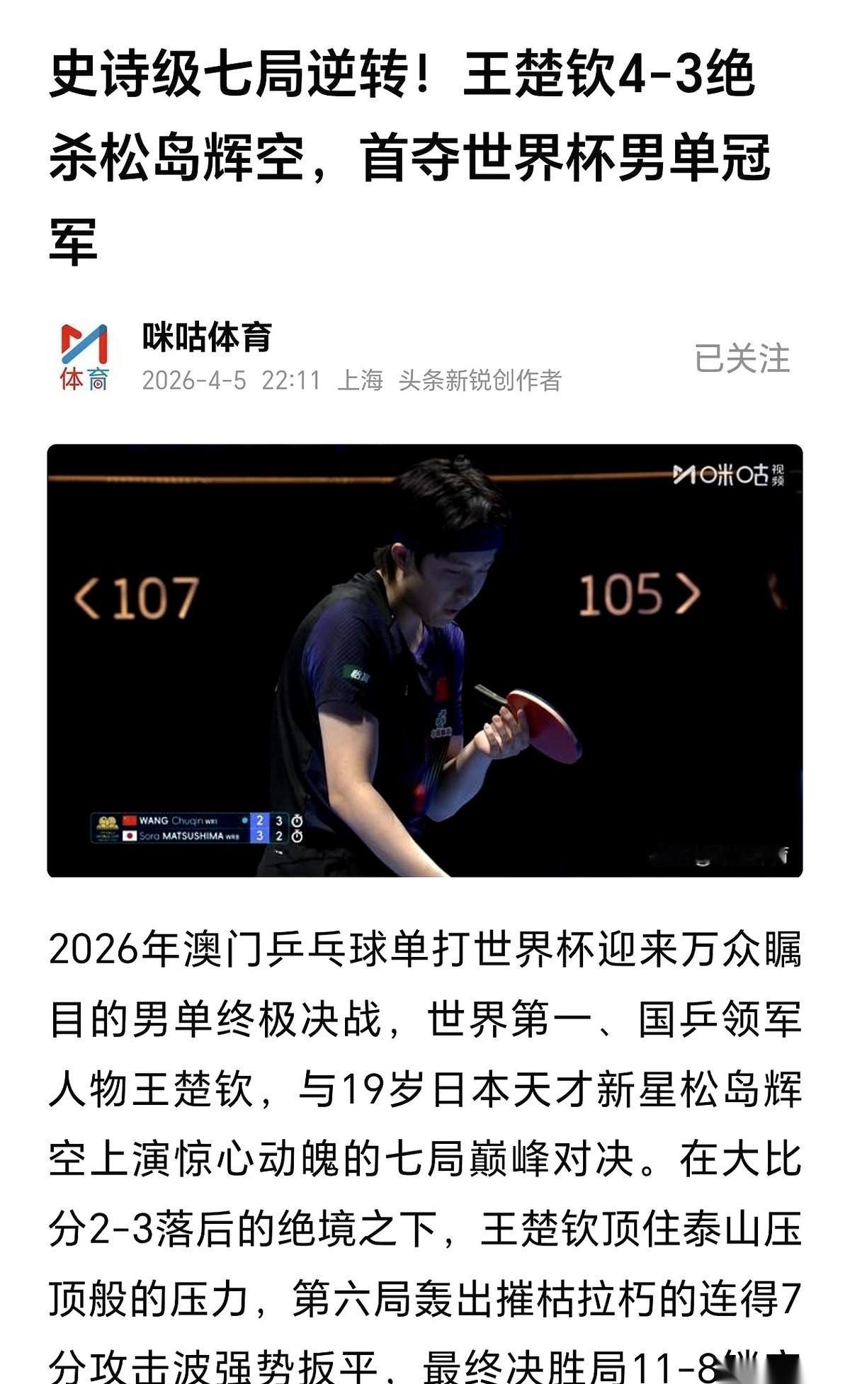 孙颖莎王楚钦并肩作战相互鼓励相互成就,赛场下起早贪黑刻苦训练,一分耕耘一份收获功夫不负有心人水到渠成。恭喜孙颖莎王楚钦双双夺得澳门世界杯女单男单冠军!这么优秀的两小只值得拥有世界一切的美好![赞][赞][赞]