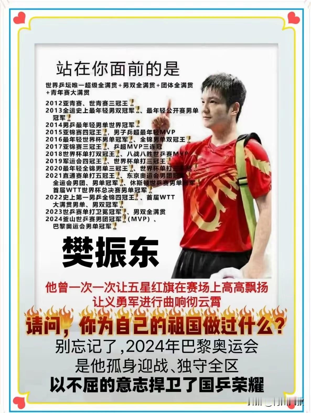 樊振东放弃世乒赛资格,我们应该尊重和理解! 昨天东哥放弃世乒赛后, 迎来了饭圈的攻击。 但是他们有没有想过, 樊振东十年铁血一单的记录至今没人打破, 这代表着东哥在团体赛中的付出! 而且东哥除了是世界唯一的金满贯, 他还是世界唯一的银满贯, 很多人不明白这个银满贯的含金量, 其实他是仍然守住了半区! 我停车位旁边的中年大叔, 每天下班后都在车里抽根烟, 刷一会手机再上楼, 在他看来, 这是难得的独处时间!