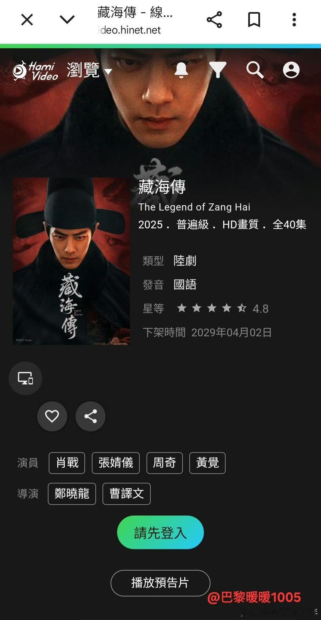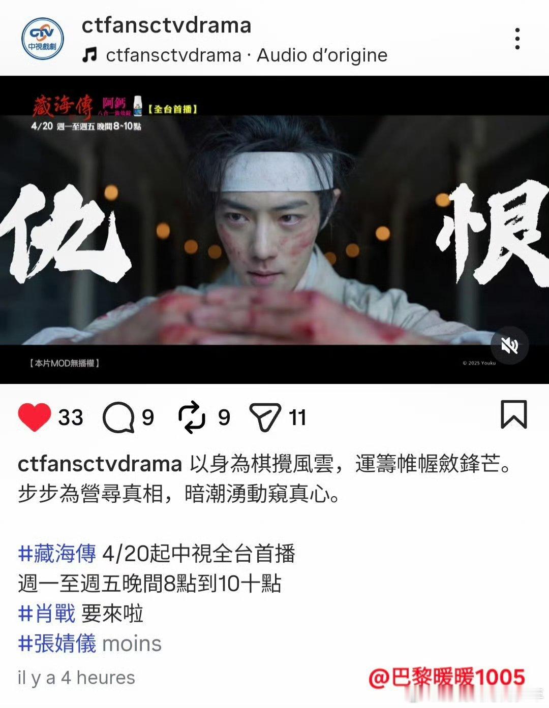 肖战藏海传《藏海传》4月20日起中国台湾中视CTV全台黄金档上星首播, 每周一至周五晚8点到10点!《藏海传》在台湾迪士尼上线播出非常火爆~成为现象级爆款陆剧一年后居然还要在台湾上星播出!肖战藏海传 不愧是火遍全球的现象级大爆剧!