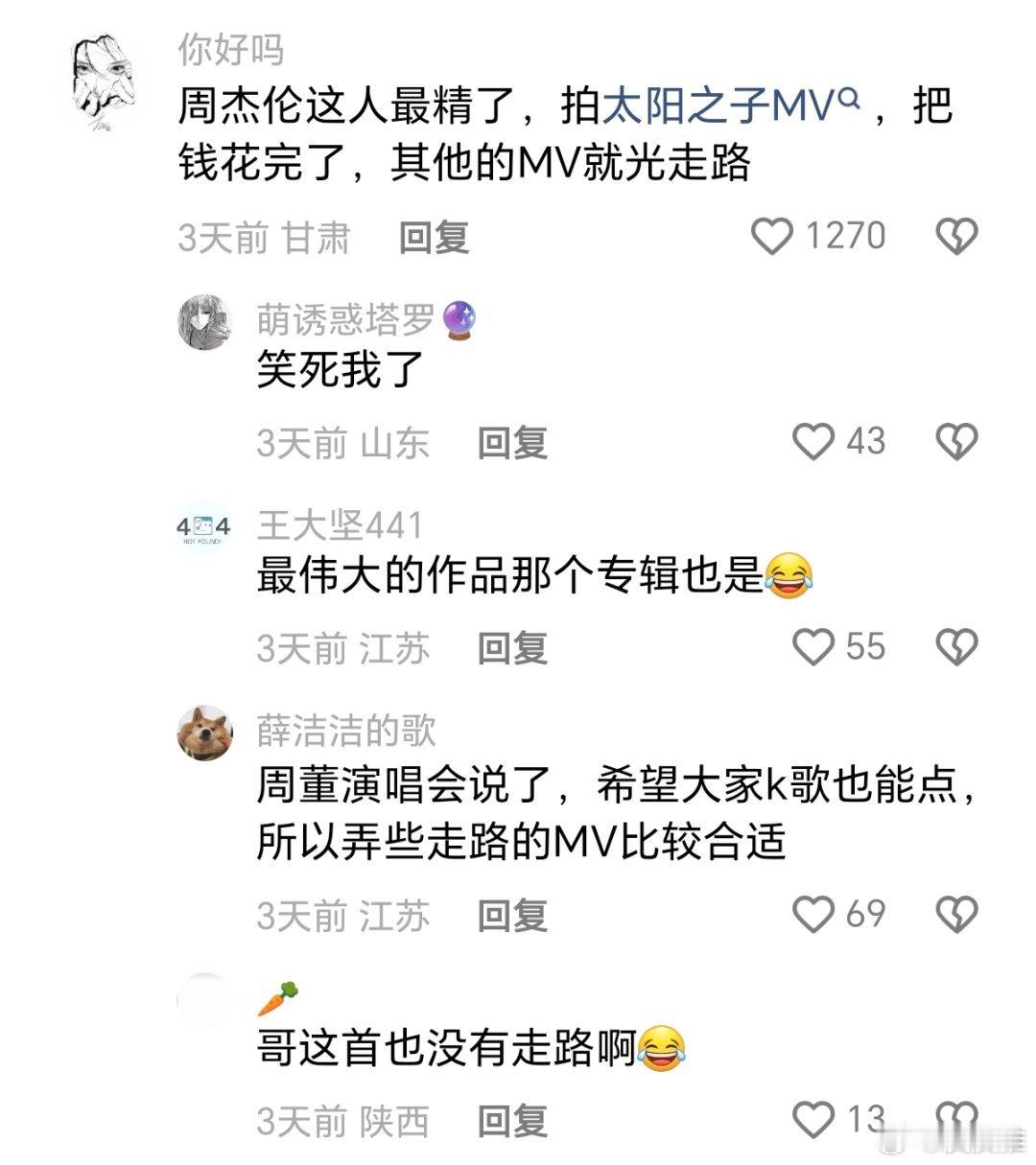周杰伦这人最精了,拍太阳之子MV,把钱花完了,其他的MV就光走路