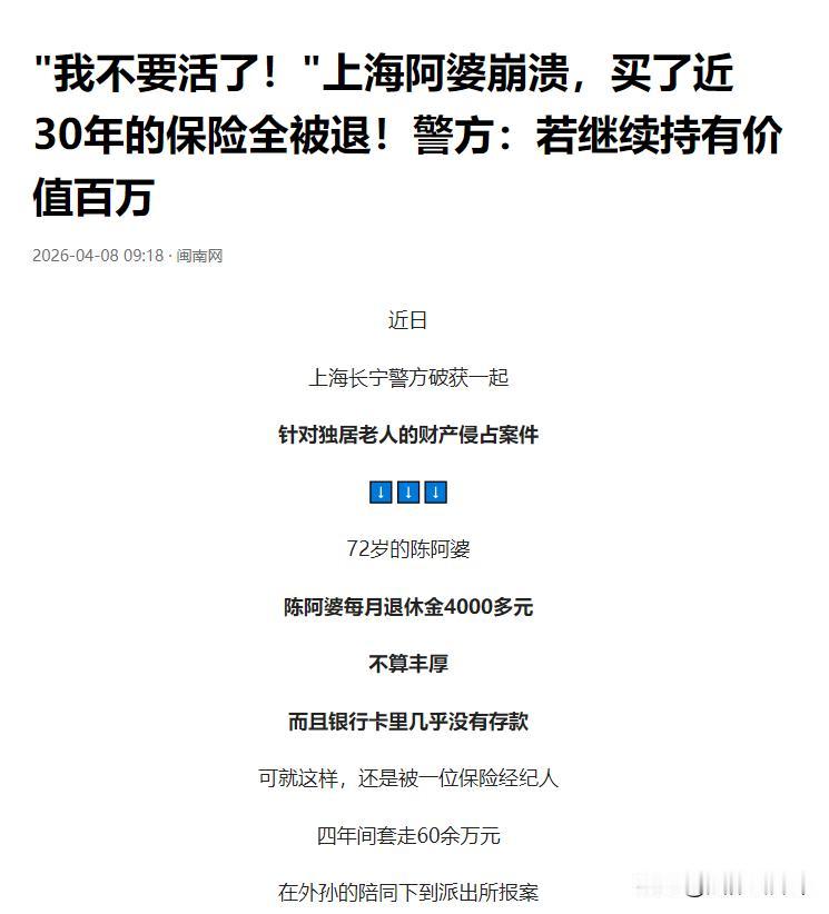 上海,一72岁阿婆在20多年前听信保险员的话,从每月4000元退休金中拿出部分去购买储蓄型保险,用来以后养老。万万没想到,保险员向阿婆借了些钱后消失了,还把阿婆购买了近30年的8份保险合同全给退了,拿着保险金到处挥霍。当阿婆得知这一切后,整日以泪洗面,称不想活了!目前,警方正在对保险员进行处理,同时对保险员的财产进行了冻结,试图为阿婆挽回部分损失。 据悉,陈阿婆丧偶多年,一直独自一人生活,女儿时常会回来探望她。陈阿婆的退休金只有4000多元,为了不给女儿添麻烦,她生活得十分节俭,所以还能攒下来一点。 后来陈阿婆听说有储蓄型的保险,相当于将钱存起来,而且还多了一份健康保障,这让陈阿婆十分心动。 之后,陈阿婆去了趟保险公司咨询这款储蓄型保险,业务员丁某热情地接待了陈阿婆。 在丁某的一番介绍后,陈阿婆与保险公司签订了8份合同,其中有二三十年后可以领取保险金的,也有陈阿婆身故后,由外孙领取保险金的。 这8份保单如果长期持有,未来价值近百万元都不成问题,这足够陈阿婆养老用了,她还想着能帮扶外孙。 合同签完后,丁某的服务并未停止,他经常上门探望陈阿婆,甚至帮忙做些家务活,这让陈阿婆对丁某产生了绝对的信任,她将保险事宜全都交给了丁某处理,就连身份证和银行卡都交给了丁某保管。 后来丁某因为资金周转不开,还向陈阿婆借了点钱。然在借款到期后,丁某却突然失联了。 陈阿婆到保险公司了解了情况后,才发现自己购买的那8份保单竟然在2024年8月份就被退了。 不仅如此,丁某还用陈阿婆的8份保单贷款了40万元,在退掉8份保单后,还套现28万元,这些钱全都给丁某拿走挥霍了。 当陈阿婆得知此事后,她整日以泪洗面,称自己都活不下去了。好在有外孙的开导,陈阿婆缓了过来,之后在外孙的陪同下,陈阿婆去报了警。 警方抓获丁某后,丁某承认一切都是他做的,而那些钱早已经被他砸在了网络游戏中。 目前,警方正在进一步调查丁某的财产,希望能给陈阿婆挽回部分损失。 1、丁某的行为该如何定性? 陈阿婆因信任丁某,将保单和银行卡、身份证信息全都交给了丁某。 可丁某却辜负了陈阿婆的信任,将陈阿婆购买的保单退掉并转走了购买保险的28万元经费,还用陈阿婆的保单贷款40万元并全部转走。 由此可见,丁某主观上具有非法占有陈阿婆财产的目的,客观上实施了秘密窃取陈阿婆数额巨大财产的行为,故丁某的行为构成盗窃罪。 在司法解释中,盗窃数额达到30万元至50万元以上的,属于数额特别巨大的情形。 《刑法》第264条规定,盗窃公私财物,数额特别巨大或者有其他特别严重情节的,处10年以上有期徒刑或者无期徒刑,并处罚金或者没收财产。 因此,丁某将面临至少10年有期徒刑的处罚。 2、陈阿婆的损失是否可以向保险公司主张呢? 陈阿婆是找保险公司购买了8份储蓄型保险合同,保险公司应当按照约定,保障合同的正常履行。 丁某在职期间,多次利用职务的便利,以及陈阿婆的信任,通过亲手操作陈阿婆的手机,将保单拿去贷款,又退掉了保单,转走了钱。 这一系列的行为中,均是因为陈阿婆给丁某提供了身份证与银行卡导致的。 因此,陈阿婆自身也存在一定的过错,她不该把身份证和银行卡以及保单管理等交由丁某全权操作。 保险公司又无法查到是谁操作了贷款和退保,毕竟丁某是在陈阿婆手机上操作的。 因此,保险公司大概率是不需要承担责任的。这样一来,陈阿婆的损失不知道什么时候才能得到弥补。 最后,养老钱,是老人的保命钱,更是他们晚年的尊严。丁某连陈阿婆的养老钱都偷,真的是太不道德了。通过此事,也是提醒大家要多多关注家中老人,不仅是身体健康问题,还有财产安全问题,并且要经常给老人灌输一些防骗知识,杜绝这种“温情骗局”,让每一位老人都能安心养老。