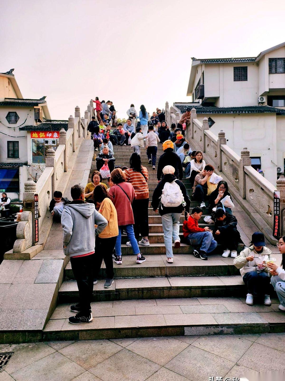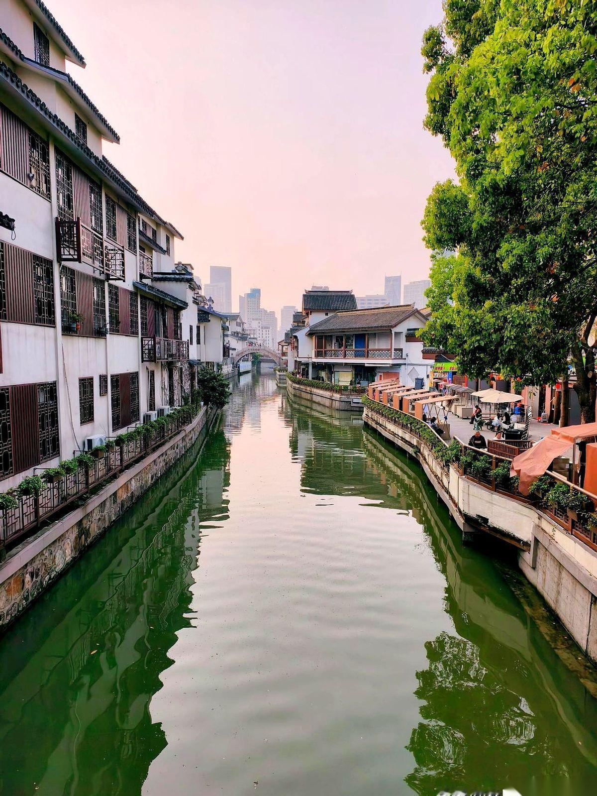 刚踏进无锡南禅寺,还没站稳,背后就传来一句:“要关门了,师傅,麻烦往外走。” 我回头,工作人员的手已经摆出了“请”的姿势,身后的大门正在缓缓合拢。没办法,只能对着那座妙光塔的塔尖,隔着人头胡乱摁下快门,算是来过了。 一步跨出寺门,人就像被扔进了滚烫的油锅。 烤鱿鱼的烟火气“刺啦”一下糊满全脸,羊肉串的孜然味霸道地钻进鼻腔,整条街的叫卖声、划拳声,嗡一下就把刚才那点佛号钟声冲得一干二净。 穿过那座挤满人的宝塔桥,拐个弯,噪音忽然被拉远了。 整个世界像是被按下了静音键。 我站在大公桥上,看着天色一寸寸暗下去,然后,对岸老房子屋檐下的第一盏红灯笼,“啪”,亮了,紧接着是第二盏、第三盏,一整排红灯笼像是商量好了一样,齐刷刷地把自己的倒影投进了墨绿色的河水里,随着微波轻轻晃动。 河这边是咖啡馆里飘出的爵士乐,河对岸是评弹老馆里传来的吴侬软语。 一条摇橹船慢悠悠地划破灯影,船上的人在看我,我在看他们。 这哪是一条街,这分明就是两个世界被一条河缝在了一起。 一边是滚烫的人间,另一边,才是江南。