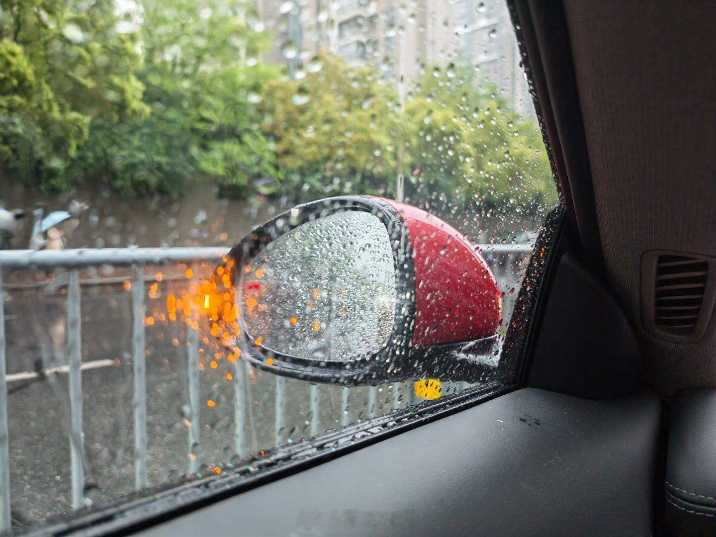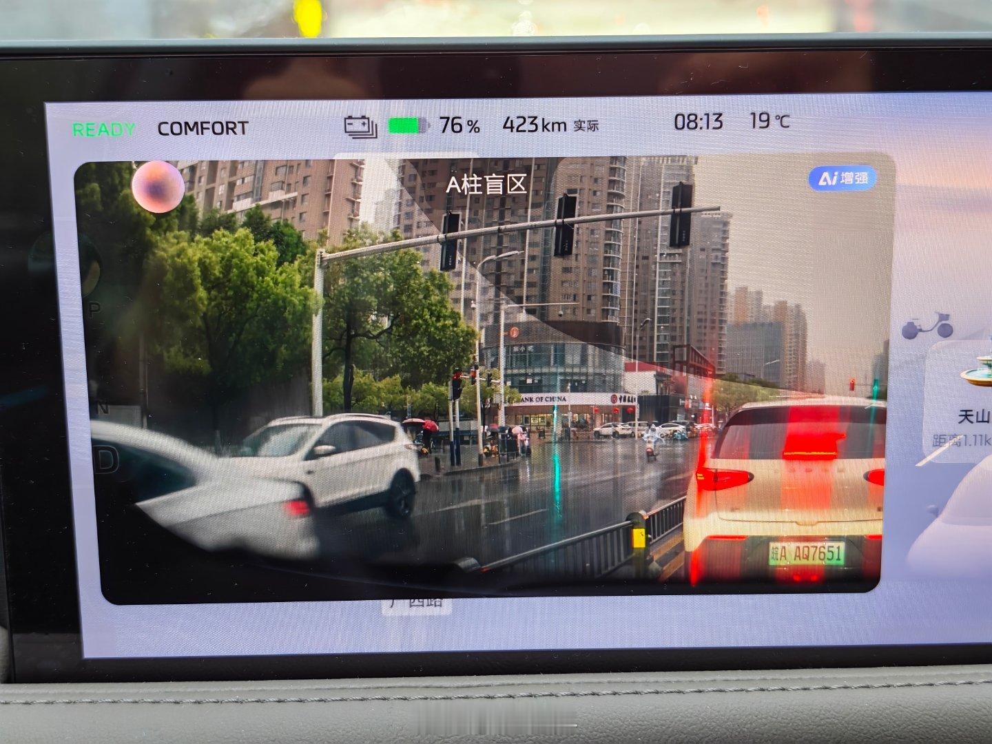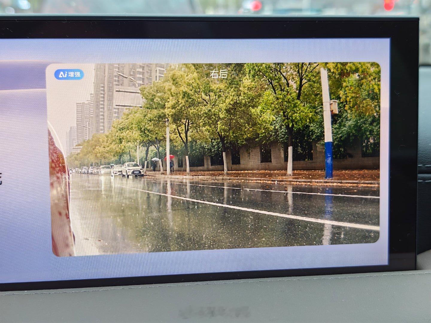 下雨天这种传统后视镜简直就没法用了,根本看不清路。幸好我这个智己L6上面带这种电子摄像头,增强后的画面把雨滴都去除了,很高清。不过今天细看这左边的画面,好像多了一半阴影,跟右边不一样。擦了下镜头也不行,先不管了不太影响使用