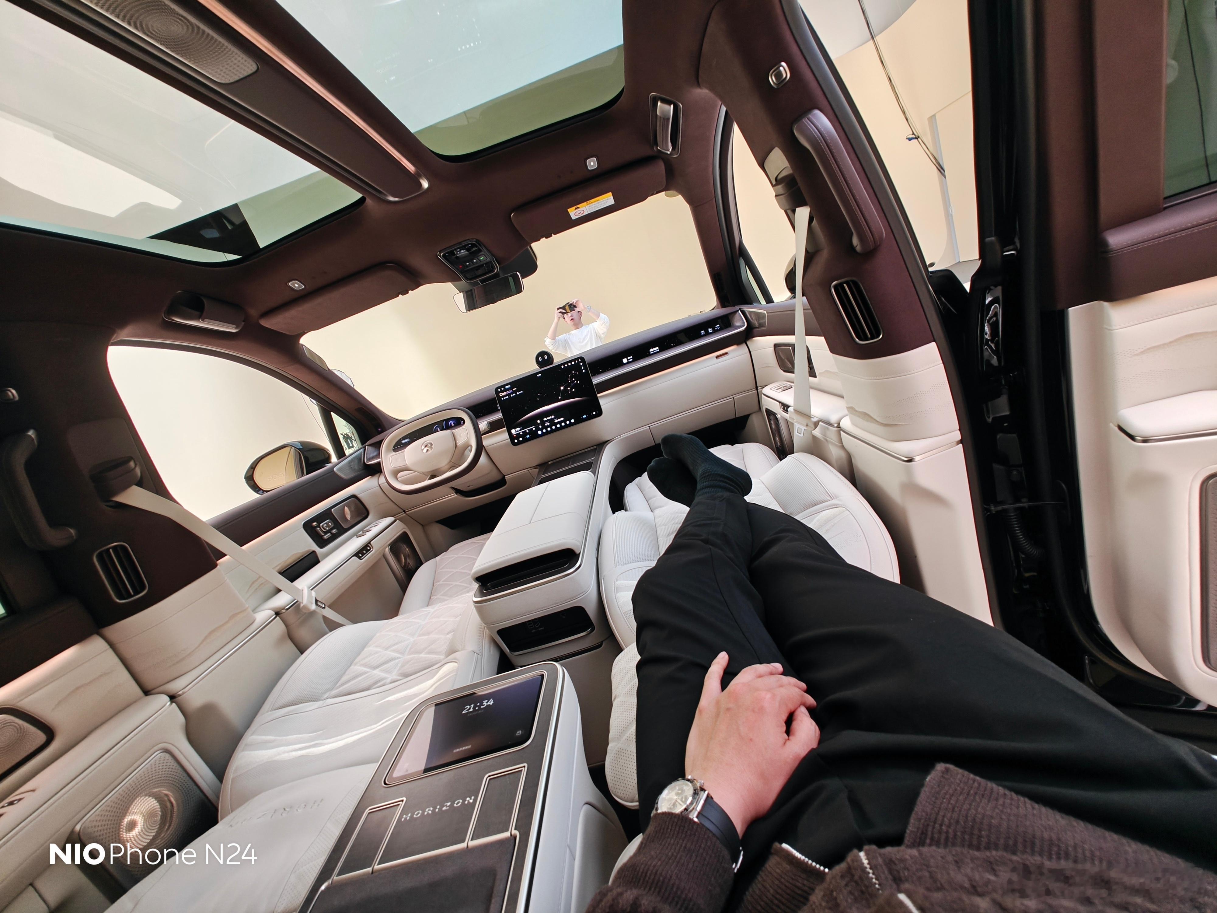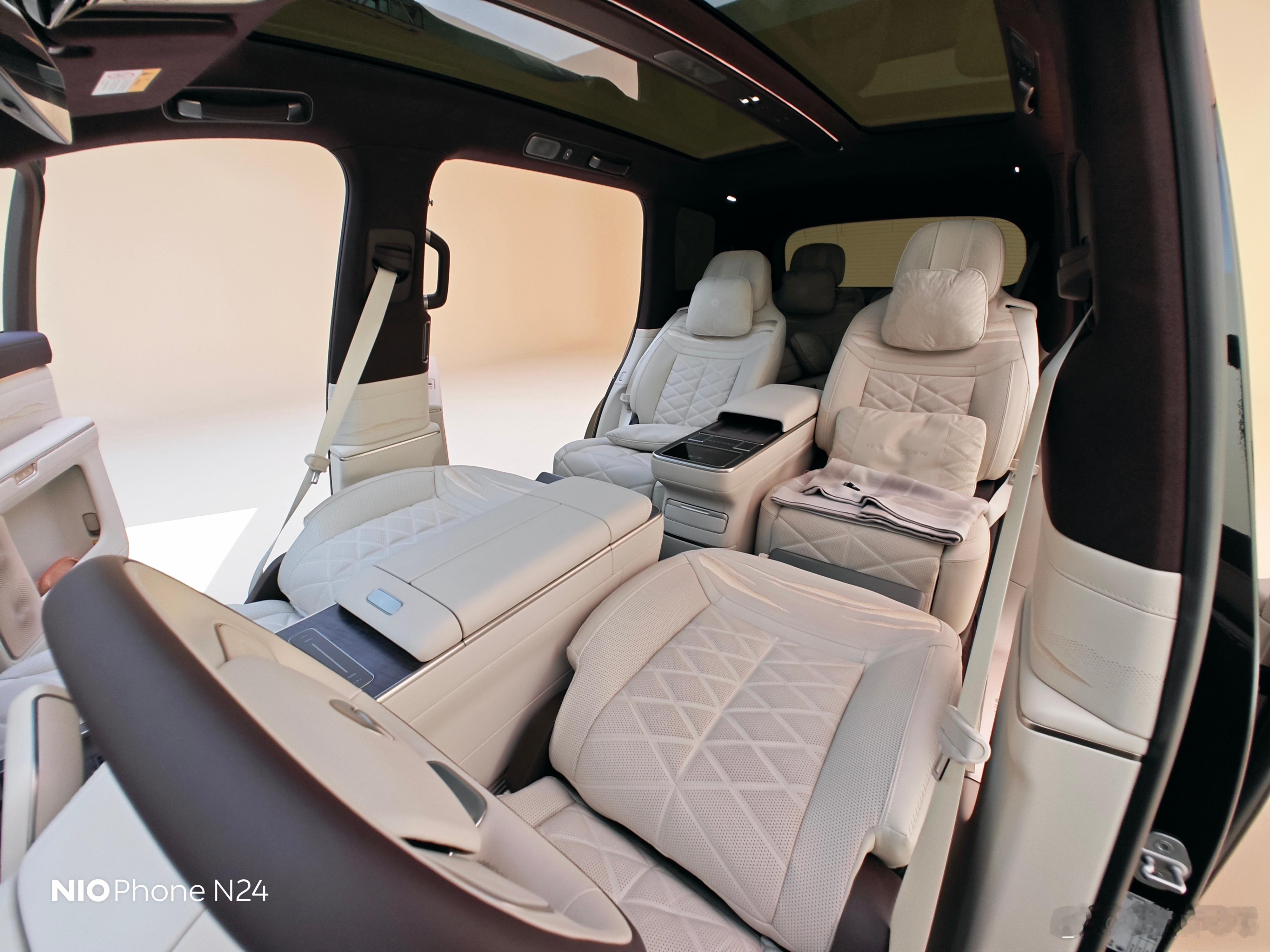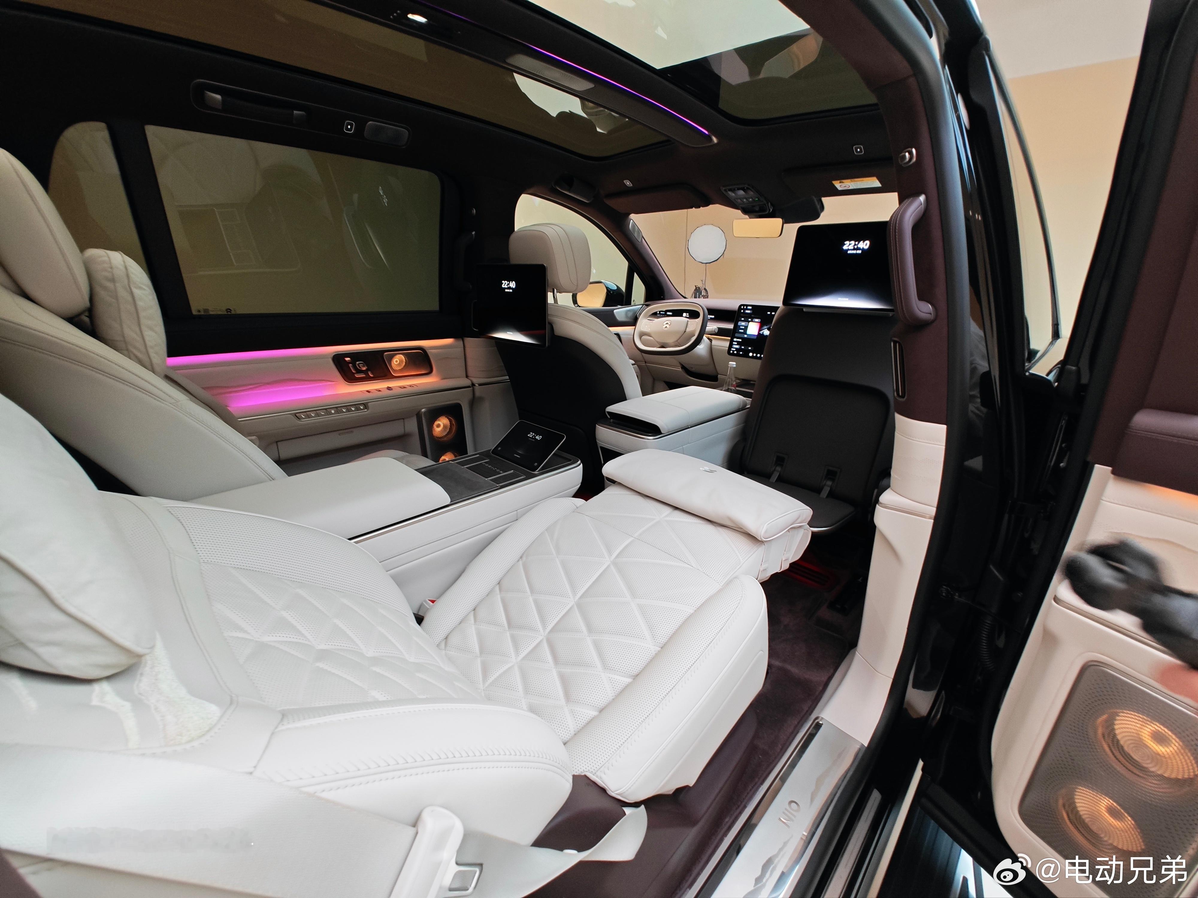 蔚来ES9就是靠背屏,不过这次在靠背屏布局下依旧可以直接成床,喜欢露营的大家可以放心。
