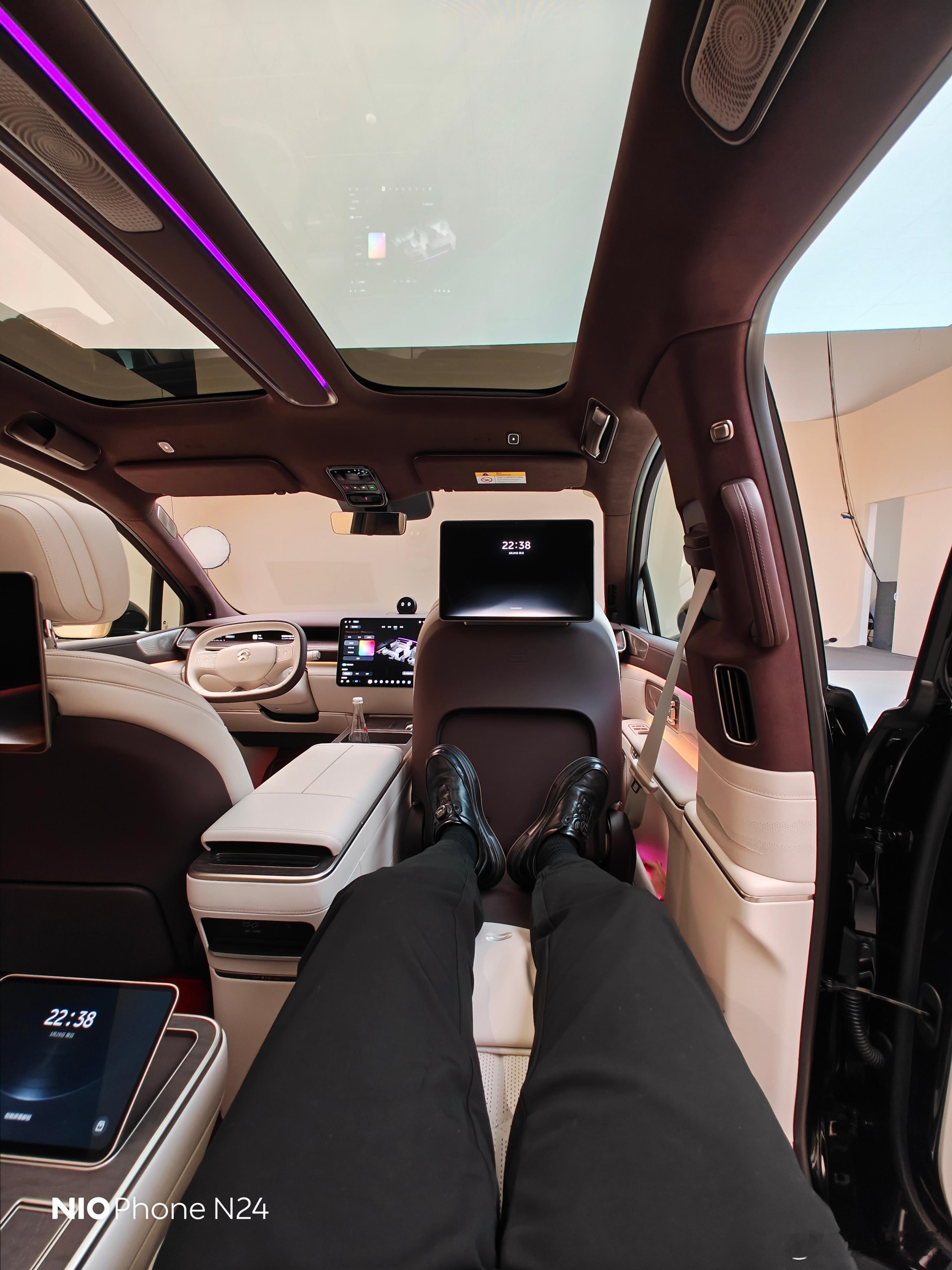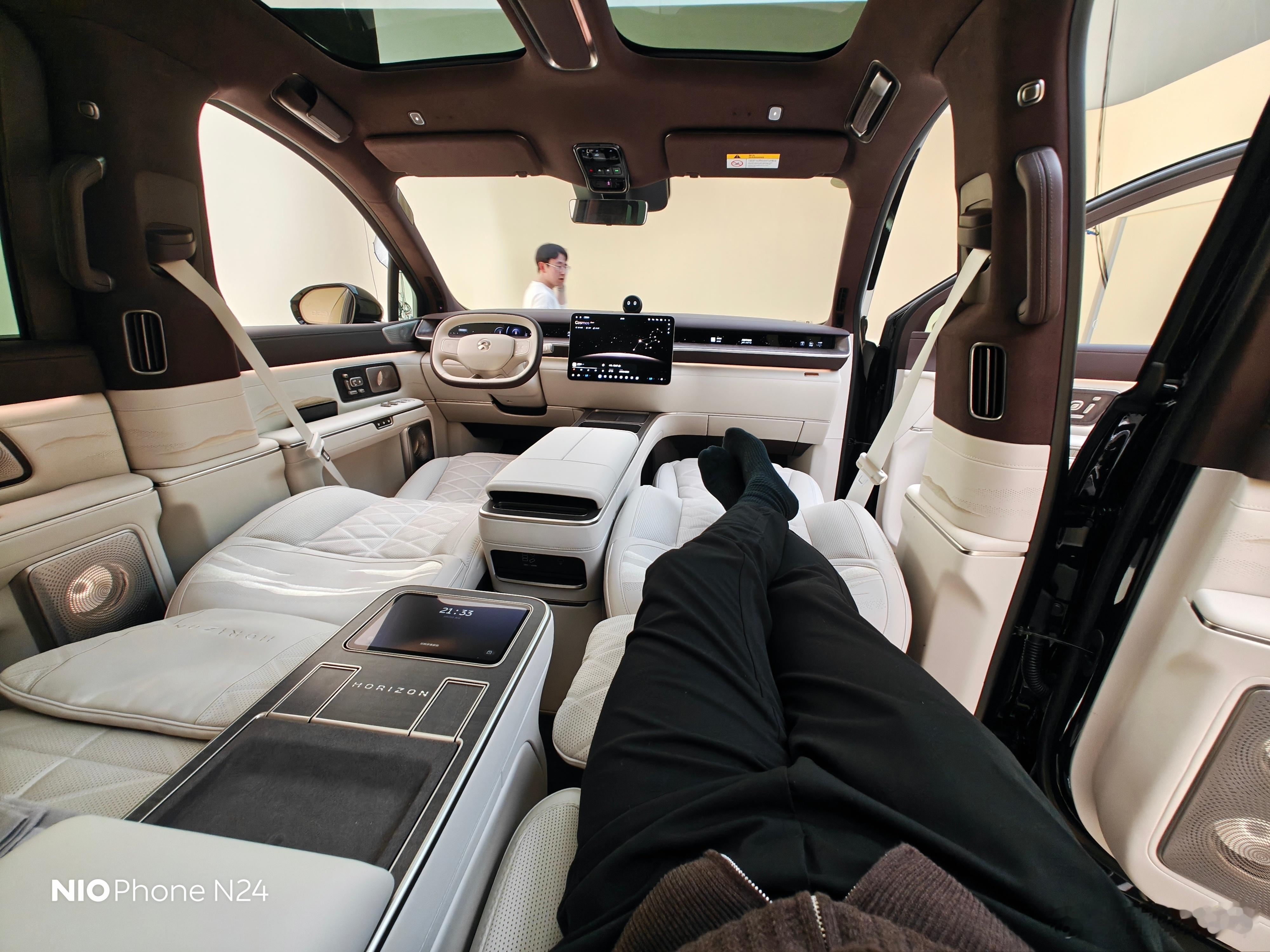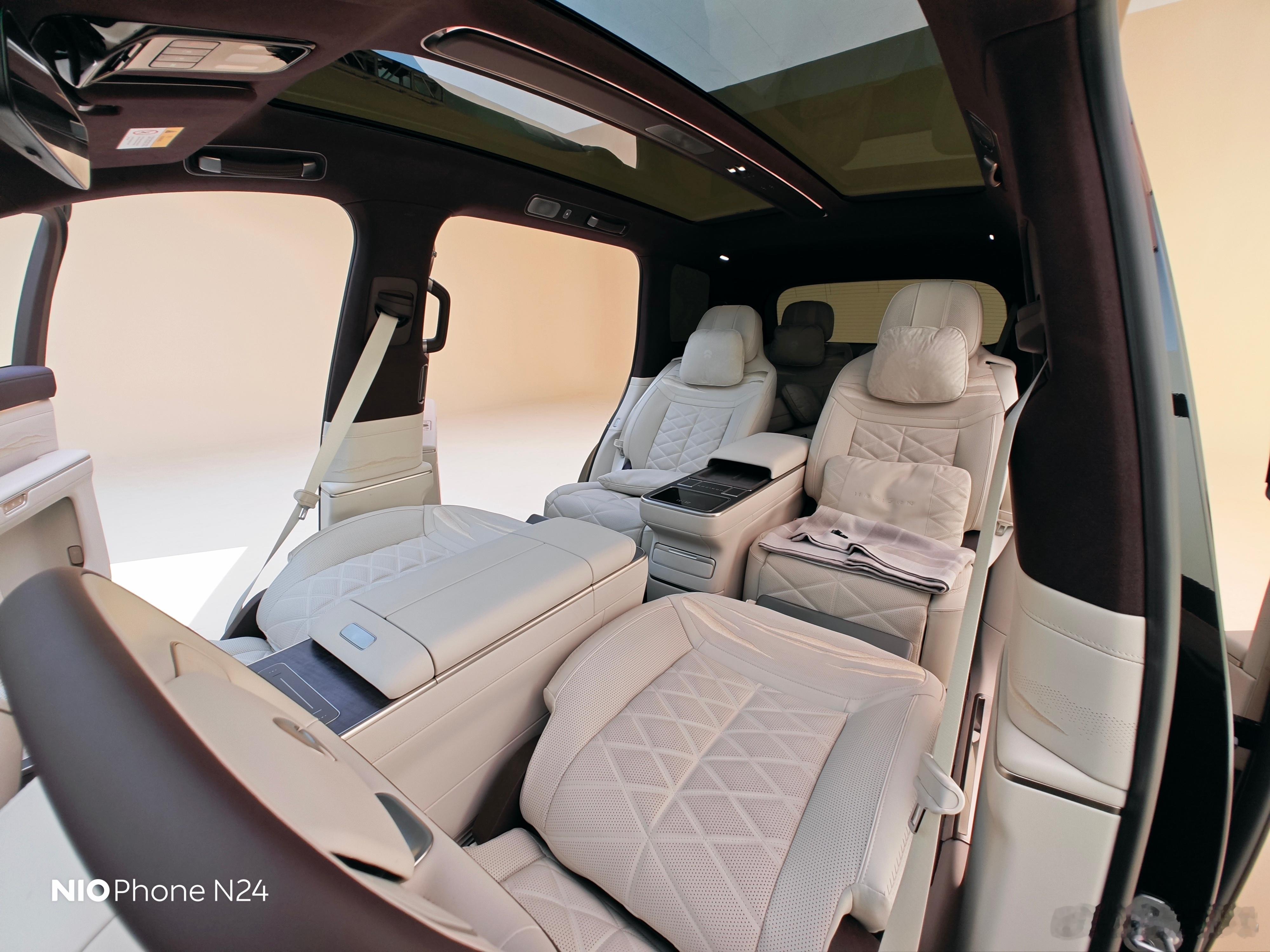 蔚来ES9就是靠背屏,不过这次在靠背屏布局下依旧可以直接成床,喜欢露营的大家可以放心。