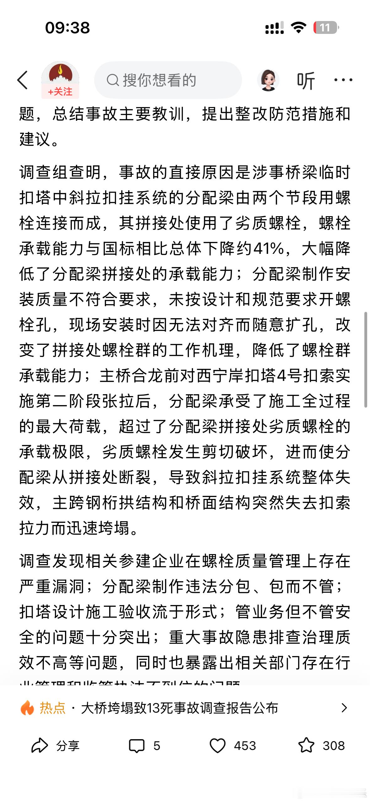 之前大桥垮塌的事故原因调查出来了,13死。竟然这么多不规范的行为同时发生,还是中铁大桥局。。。这是央企,是盖所有大桥最主力的单位,参建率最高的单位。这些不规范的行为任一个都会降低桥的强度。。。希望能查查其他桥有没有类似的情况