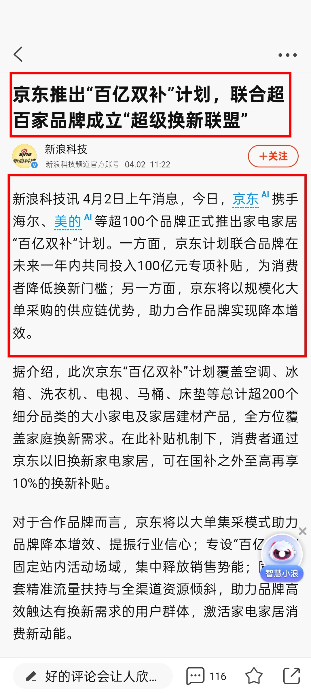 包括海尔、美的等100+品牌、200+品类,组了个“超级换新联盟”,把补贴、物流、服务全捆在一起。