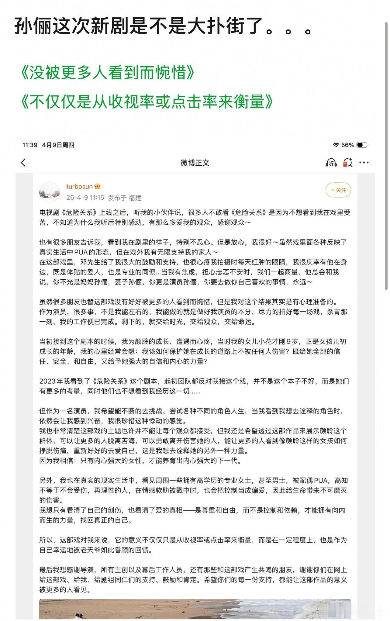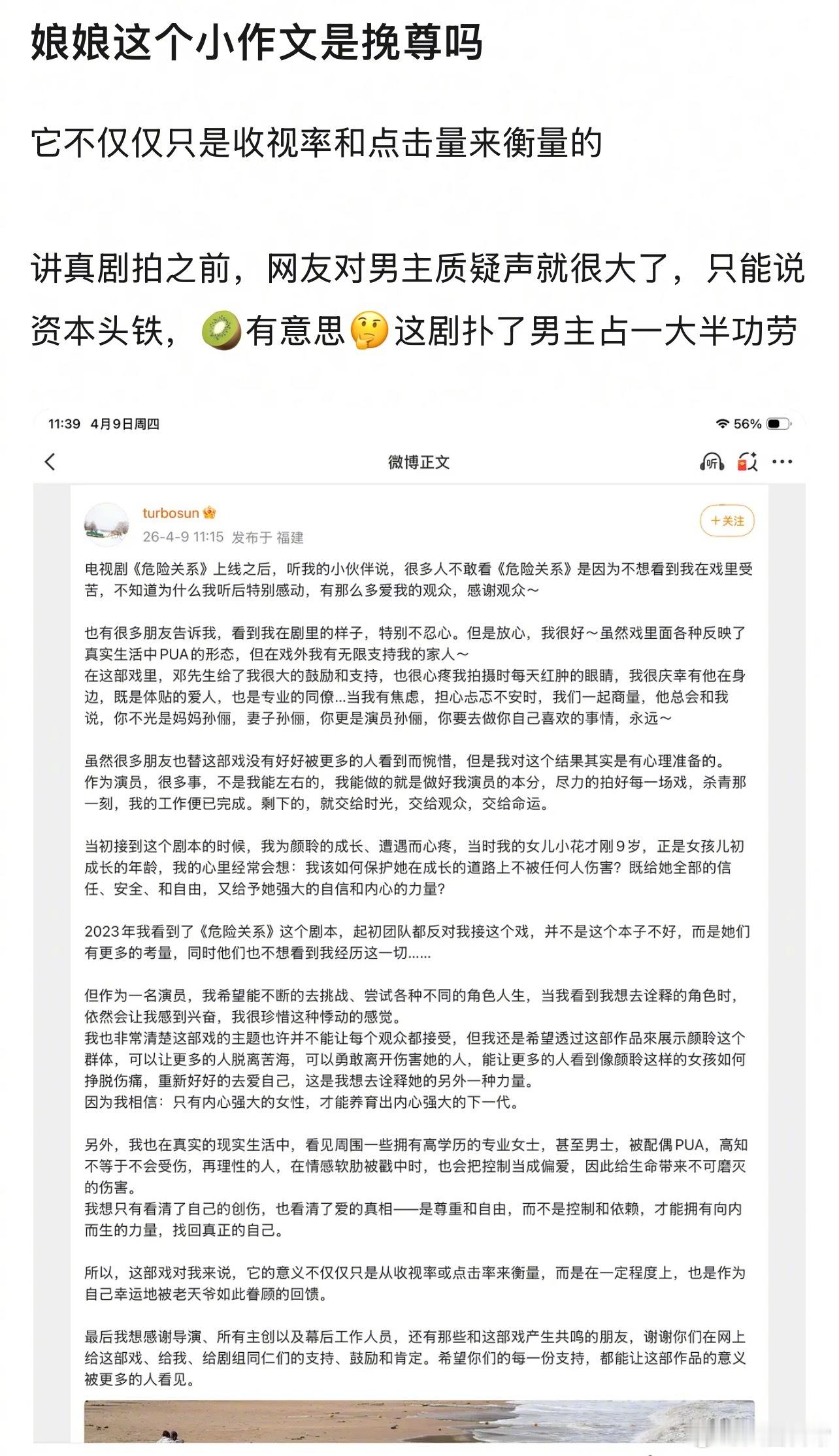 孙俪《危险关系》收官小作文写得很用心啊,为啥豆瓣都说她在为收视率挽尊
