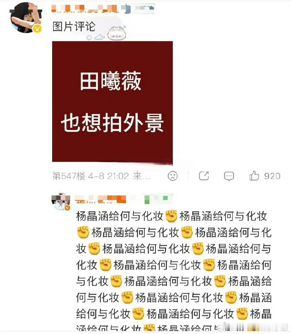 田曦薇粉丝喊话让化妆师给何与化妆,让田曦薇出外景,你怎么看