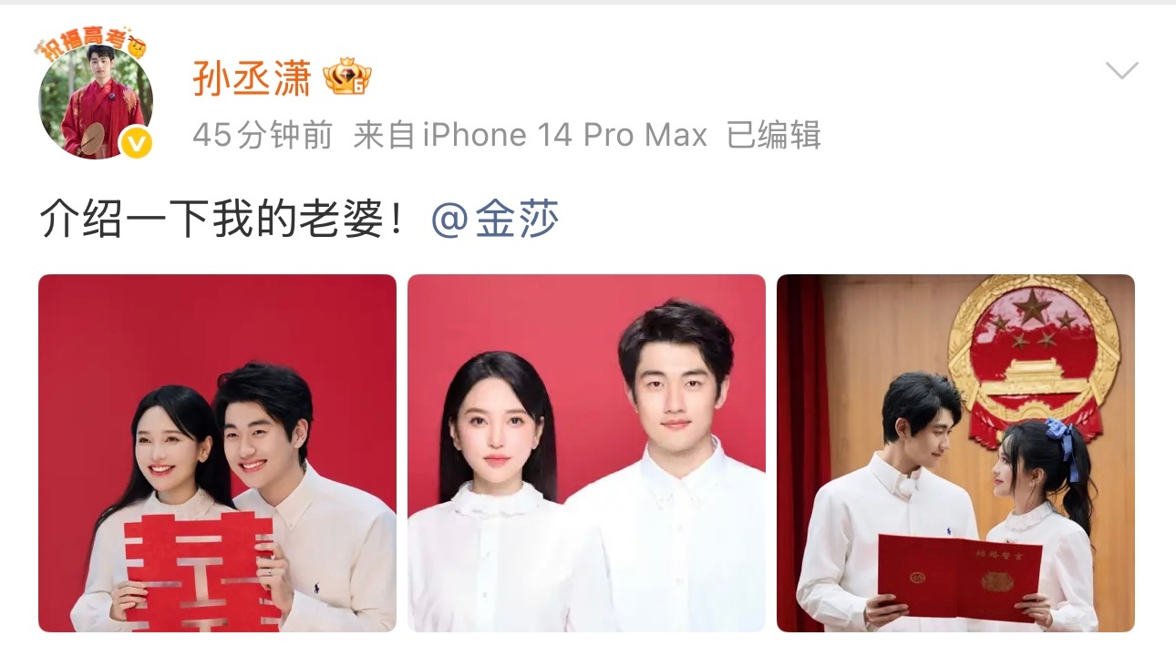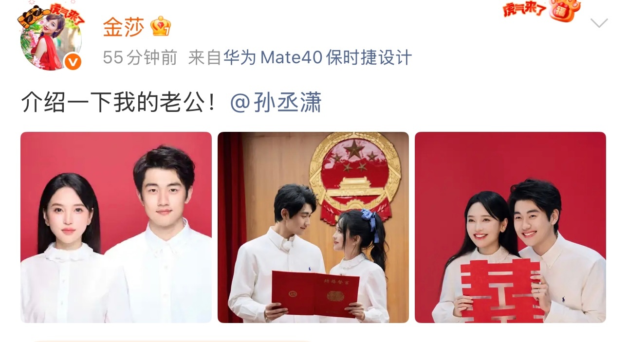 金莎45岁状态金莎孙丞潇领证“介绍一下我的老婆”“介绍一下我的老公”金莎孙丞潇官宣领证了,恭喜啊