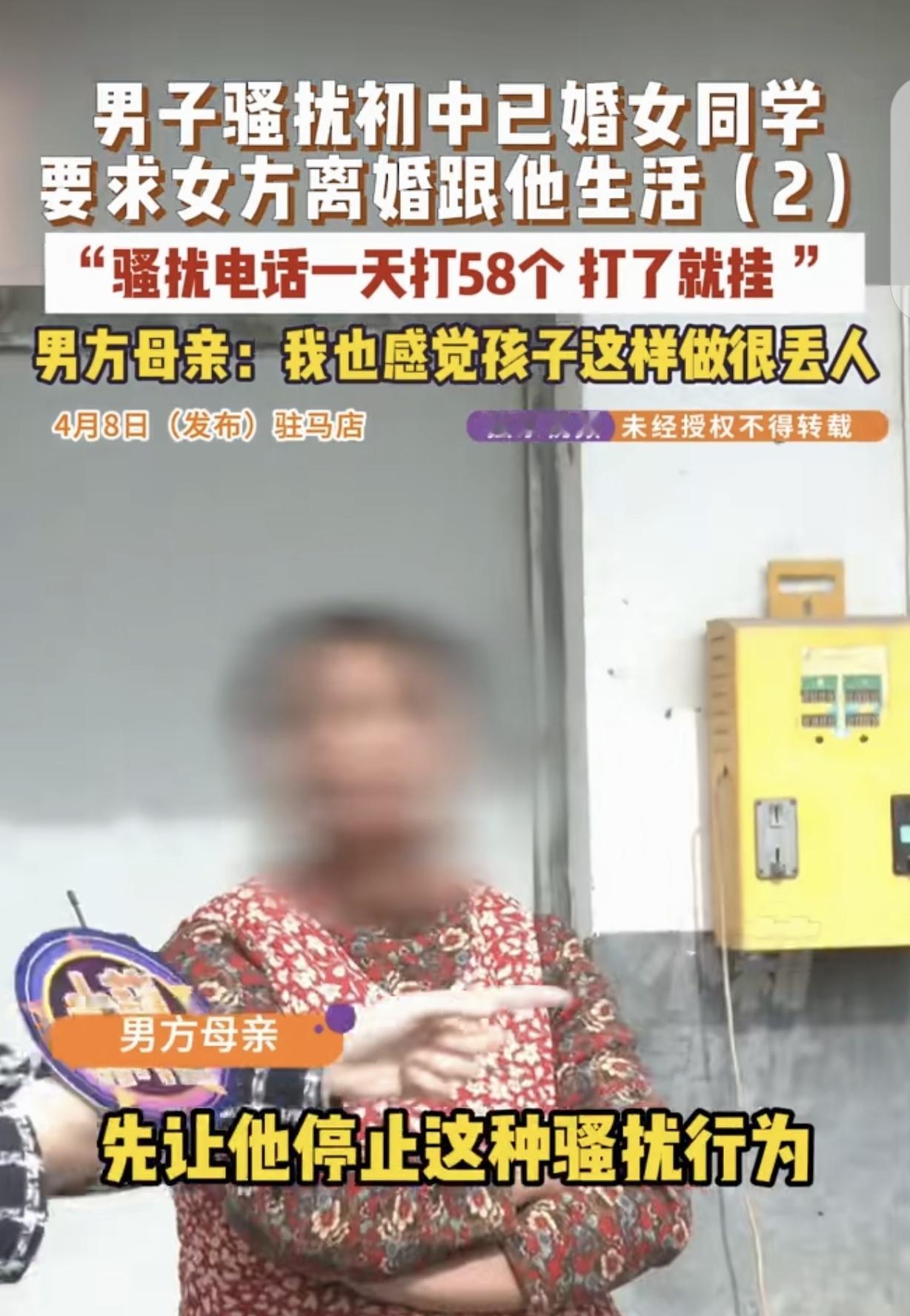 河南驻马店,一20多岁男子打光棍,他骚扰初中已婚女同学,让她离婚嫁给自己,否则她孩子有危险,一天给她打58个电话,打完就挂,主打一个,我孤枕难眠,也不让你好过。男子还给女同学50岁的母亲打,去女同学婆婆家找她,女同学:我都10几年没见过他,他长啥样我都不记得了。男子母亲:我也感觉儿子这样做丢人现眼,可我没办法。 一男子20出头,本该是在深圳工厂里踏实干活攒钱的年纪,歪心思却全花在了10几年没见的初中女同学身上。 2人从初中毕业后就断了联系,女子早就成家立业,孩子都满地跑了,连这个男的长什么样、叫什么名都记不清楚。 可偏偏这男子不知道从哪儿找到了对方的联系方式,开始了一场旷日持久的“夺命连环扣”。 男子的逻辑荒唐得吓人,因为他自己单身娶不到媳妇,日子过得不顺心,所以女子家庭幸福,婚姻美满,他心里就不得劲。 他一天能给女方打58个电话,接通了不说话,或者直接挂断,这种精神折磨比吵架更让人崩溃。 女子问男子要干嘛?男子告诉女子,他就想跟她好好聊聊。 女子说,那就聊聊,你说我听,可男子又说不出个一二三来,就是让女子离婚跟他过。 更恶劣的是,他不仅骚扰女同学本人,还把手伸向了对方的家人。 他给女方50岁的母亲打电话,甚至摸到了女方婆家门口蹲点。 这种行为已经从骚扰,演变成了威胁,他话里话外透着一股狠劲,扬言如果女方不离婚嫁给他,孩子就会有危险。 在女子看来,男子虽然是她的初中同学,可说实话,上学时对他印象就不深。 大家毕业后各奔东西,这么多年没联系,她连他长啥样都模糊了,就是恍惚记得有这么一个人。 可他却盯上自己了,看似情深似海,其实是极端的占有欲,严重的心理畸形。 女子忍无可忍,联系媒体,记者给男子打电话他不接,连亲生母亲都打不通他电话。 男子就把所有精力,耗在毁掉女子的生活上。 他们要是有一段旧情,男子想旧情复燃,也在情理之中,或者他们之间有什么深仇大恨,他想报复也能理解。 可关键是,他们只不过是初中同学,而且多年毫无交集,说陌生人也不为过。 男子的母亲虽然觉得丢人现眼,却也直言管不了。女方婆家现在已经报警处理。 这本质上是一场打着“想媳妇”幌子的心理暴 力,对方并不是因为深情,而是想通过毁灭他人的幸福来找心理平衡。 这男子真是离谱到家了,自己找不到媳妇,就盯着10几年没联系的女同学撒气,这哪是“想媳妇”,分明是心理扭曲。 人家好好的日子过得安稳,他倒好,电话轰炸、骚扰家人还威胁孩子,纯纯是自己过不好也不让别人好过。 都20多岁的人了,有这闲工夫折腾别人,不如踏踏实实干点正事,好好攒钱、提升自己,不比在这耍无赖强? 再说了,就算真有好感,也得讲基本法吧,这么干不仅招人恨,还得担法律责任,纯属得不偿失。 《治安管理处罚法》第42条规定:多次发送淫秽、侮辱、恐吓或者其他信息,干扰他人正常生活的,处五日以下拘留或者五百元以下罚款;情节较重的,处五日以上十日以下拘留,可以并处五百元以下罚款。 具体到本案,男子一天拨打58个骚扰电话、威胁女方家人的行为,已明显干扰他人正常生活,符合该法条处罚情形。 警方可依法对其采取拘留或罚款措施,维护被害人的合法权益。 对此,你怎么看? 关注@运良说法 学法律知识不迷路