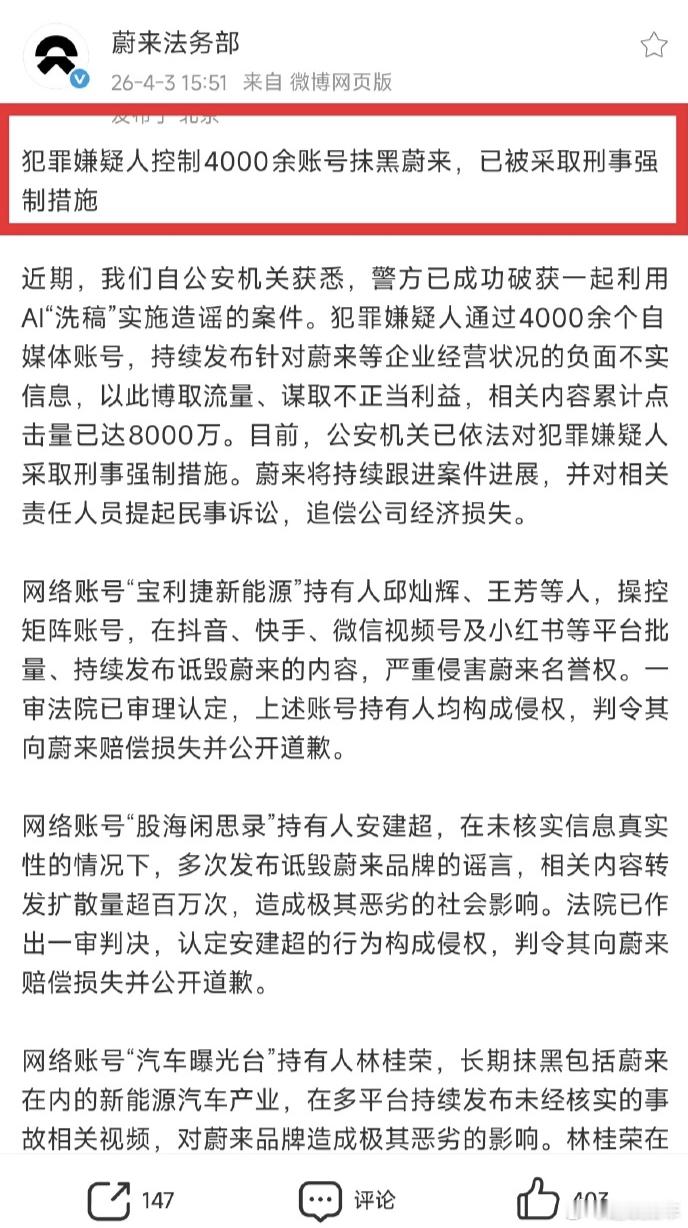 4000多个账号抹黑蔚来,就连比亚迪“智驾平权”也能被泼脏水,懂的都懂。