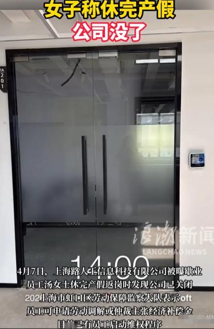 万万没想到!上海,一女子请事假+产假在家里休了9个月,等她回到公司准备复工,却发现公司大门紧闭,公司都已经没了,女子询问同事得知大家都离职离开了,但女子却不能接受,已经向公司申请赔偿 说白了,这简直是年度最离谱的复工现场!上海一女子在家休了9个月的事假+产假,满心欢喜准备回归职场、赚钱养娃,结果到了公司门口直接傻眼——大门紧锁,连个招牌都没剩下,好好的公司居然凭空消失了,换谁估计都得懵圈。 事情是这样的,这名女子之前因为身体原因先请了事假,紧接着就迎来了预产期,顺势续了产假,前前后后加起来一共休了9个月。 这9个月里,她一门心思在家养身体、照顾新生儿,几乎没怎么关注过公司的事情,直到休完假准备复工,才特意收拾妥当去了公司,可眼前的景象让她彻底慌了神。 她在公司门口转了好几圈,连个值班人员都没看到,无奈之下只能翻手机找同事询问,这才知道,早在几个月前公司就经营不下去了,老板宣布解散,所有同事都陆续办理了离职,各自找了新的工作。 听到这个消息,女子当场就无法接受,觉得自己休产假是合法权益,公司就算解散也该提前通知她,现在她没了工作,还得养孩子,于是就向公司提出了赔偿申请。 这事一传开,网上就有不少人议论,我也忍不住想多说两句,首先就有人疑惑,她这人缘也不怎么样吧?整整9个月啊,不算短了,公司里居然没有一个人联系过她? 别说告知公司解散的消息了,就连她生孩子这么大的事,也没有一个同事道贺、送句祝福,我生孩子的时候,单位大领导都亲自到医院来看望,还送了慰问品,对比之下,她这职场人缘是真的有点让人唏嘘。 还有人说,这也能看出她跟公司一点感情都没有,甚至可以说根本不关心公司的死活,现在哪个公司没有工作群?就算不常说话,群里也会发一些公司通知、日常动态吧,就算工作群解散了,总有一两个关系稍微近点的同事吧? 可她倒好,9个月里对公司的情况一无所知,直到复工才发现公司没了,最后居然还有脸找已经破产的公司要赔偿,难免让人觉得有点不合理。 我认为,这事也折射出一个很现实的问题,这也是为什么现在很多年轻人不敢结婚生子的原因之一,尤其是女生。 要是在国有企事业单位、公务员系统上班,那还好些,各项福利保障都很完善,休产假期间有生育津贴,不用担心公司突然倒闭,也不用担心休完假就没工作。 但普通的私企、小公司就不一样了,我感觉很多女生在这种公司上班,都不敢轻易怀孕生产,一来担心休产假期间没有基本工资,二来怕公司趁机辞退自己,就算不辞退,也可能面临调岗降薪的情况,更别说遇到这种公司直接解散的意外,连赔偿都不一定能拿到手,根本没有切实的保障。 据说,按照相关规定,公司解散时,需要向休产假的员工支付经济补偿,还要补足未发放的产假工资,这些费用属于优先清偿的职工债权,但实际执行起来却没那么容易,很多公司解散后资产所剩无几,员工的赔偿往往难以兑现。 以上仅为个人看法,这事没有绝对的对错,女子维护自己的合法权益无可厚非,可她自身也有疏忽,对公司情况过于不上心。不知道大家怎么看?是觉得女子太矫情,还是觉得公司做得太过分?欢迎在评论区留言讨论。