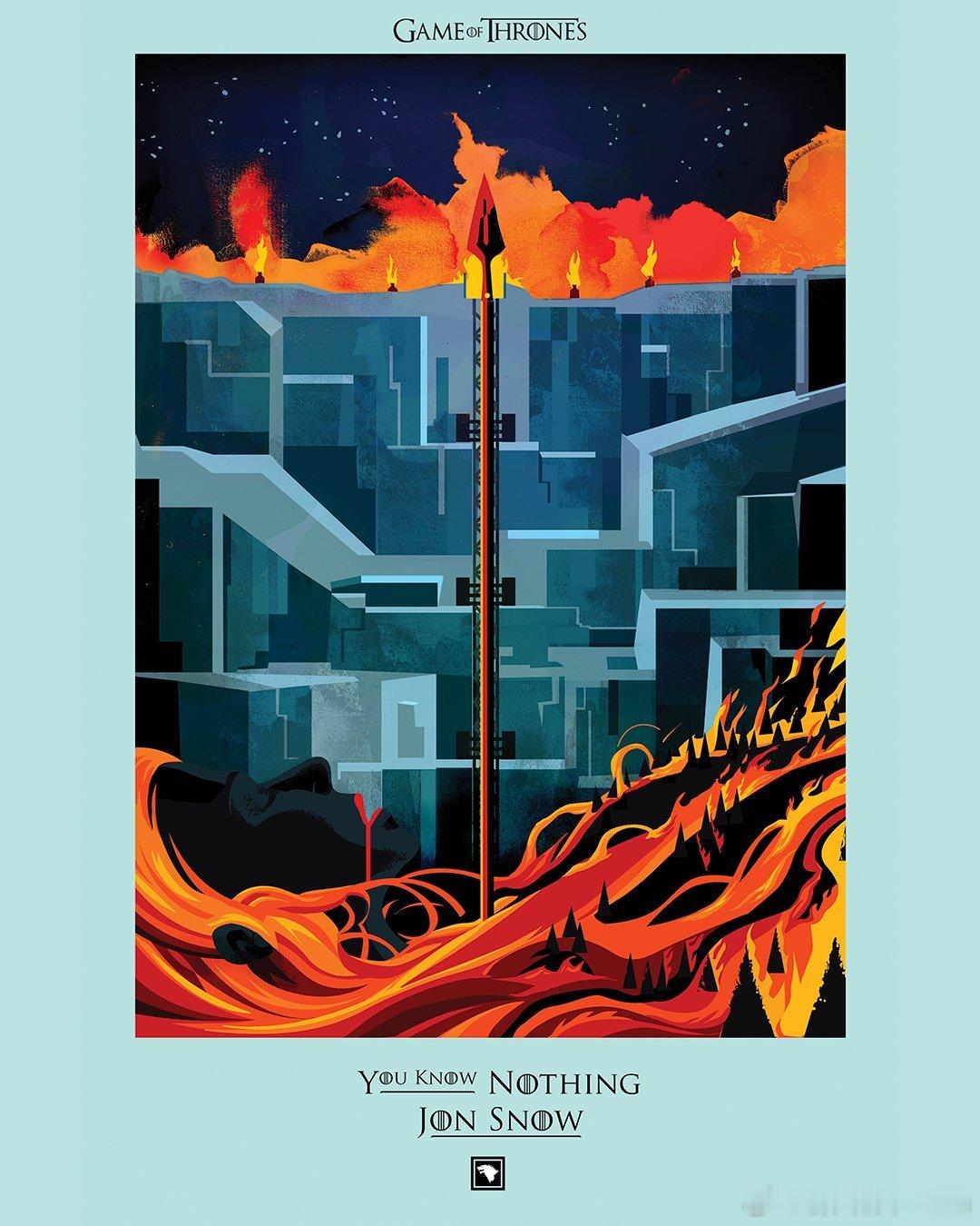 RobertBall创作的一组致敬《权力的游戏》系列中标志性死亡的海报