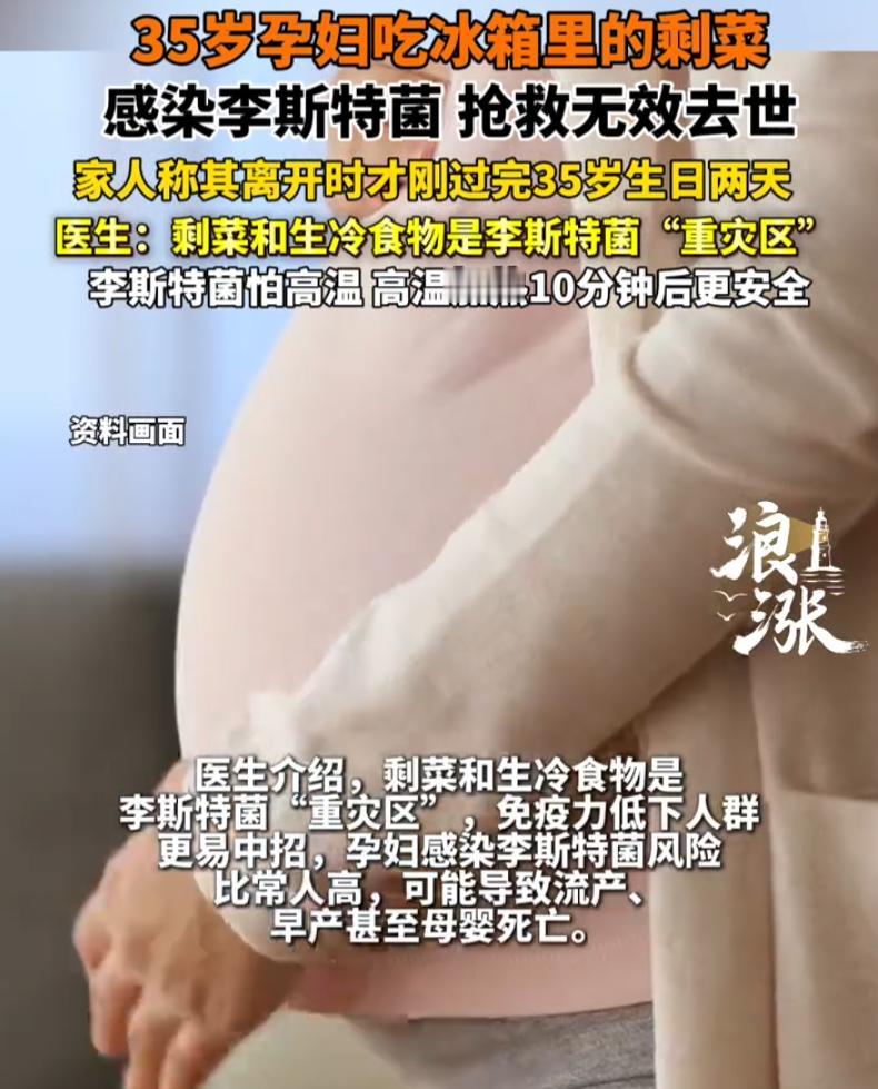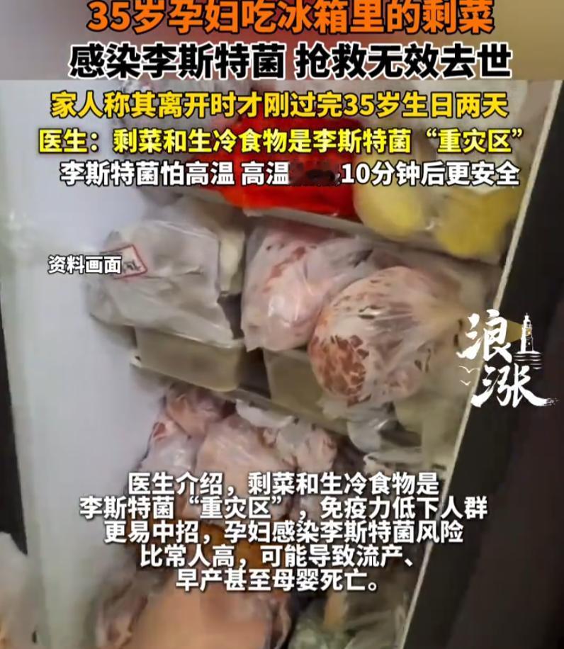 悲剧还是发生了!河南郑州,一名35岁孕妇懒得做菜,为了方便就吃了冰箱里的剩菜,不料,吃完后感染李斯特病毒,经过抢救但还是无力回天,而这位准妈妈离开时,才刚刚过完生日2天,一片唏嘘 据女子妈妈介绍,女儿今年才35岁,再过几个月就要当妈妈了,那天她懒得动,不想炒菜,就从冰箱里翻出点剩菜,凑合一顿 吃完没多久,身体出问题了。送到医院一查,李斯特菌感染。这名字很多人听着陌生,但凶险程度超出想象。对普通人来说,这菌可能就闹几天肚子;但对免疫力低的人更危险,而且孕妇感染风险更高,可能导致流产、早产甚至母婴死亡 说实话,第一反应是震惊。冰箱里的剩菜,家家都有,谁没吃过几顿?怎么就偏偏这么严重? 了解之后才发现,李斯特菌有个外号叫“冰箱杀手”。绝大多数细菌在低温下会老实,它偏偏能在4℃的冷藏室里活得滋润。剩菜如果不彻底加热,或者生熟交叉感染,风险就藏在那一口方便里 孕妇的免疫系统本身就在“降级”。身体为了保护胎儿,会主动降低免疫反应,这给了李斯特菌可乘之机。一旦感染,后果常常是流产、死胎,甚至母亲丧命。数据显示,孕妇感染李斯特菌的风险比普通人高出十几倍 很多人对冰箱有误解,觉得东西放进去就等于进了保险箱。实际上,冰箱只是延缓腐败,不是灭菌柜。剩菜放久了,即使没变味,也可能已经成了细菌的温床 这个事真的是一个提醒,特殊时期,别拿自己的免疫系统去赌。孕妇不是普通人,吃进嘴里的东西,值得多一道加热程序。剩菜不是不能吃,而是必须彻底煮沸、热透。冰箱定期清理,生熟分开,切过肉的案板别直接切水果