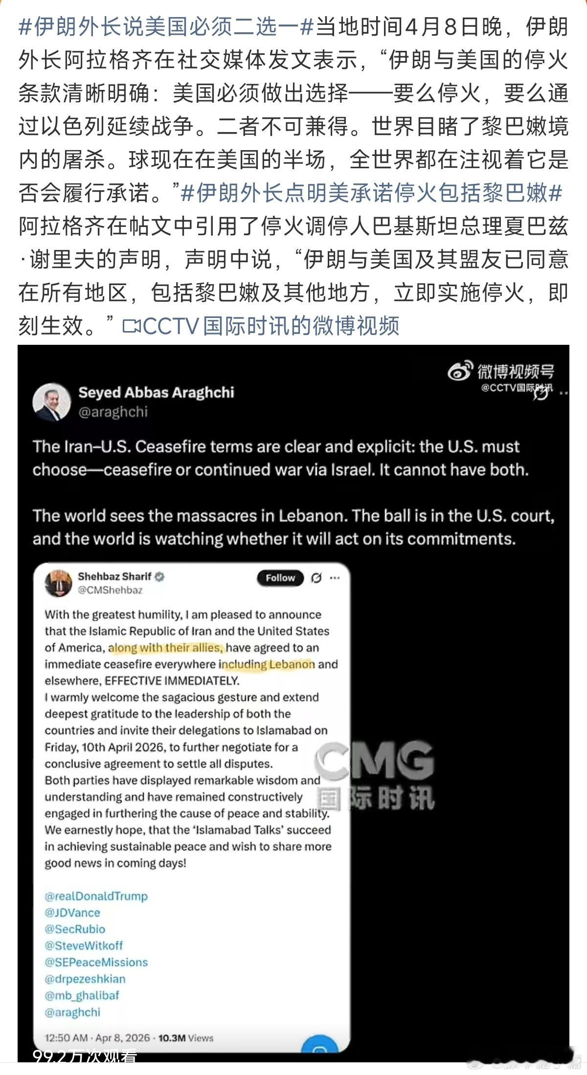 伊朗外长说美国必须二选一原来真的是老美的缓兵之计,一边高喊停战一边让以色列继续轰
