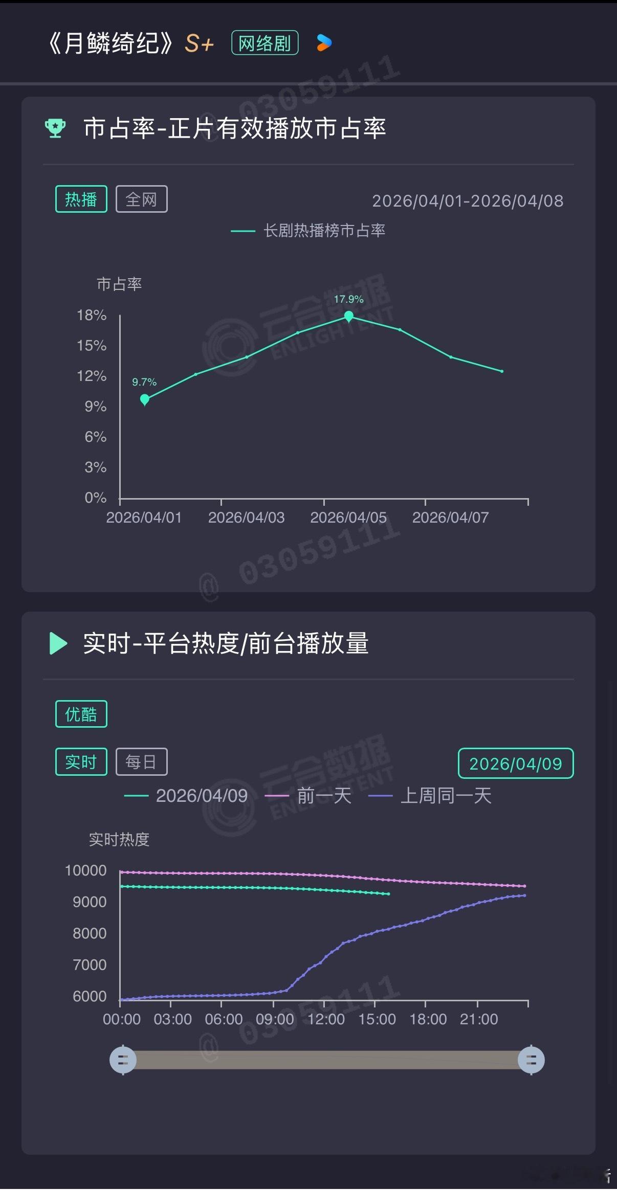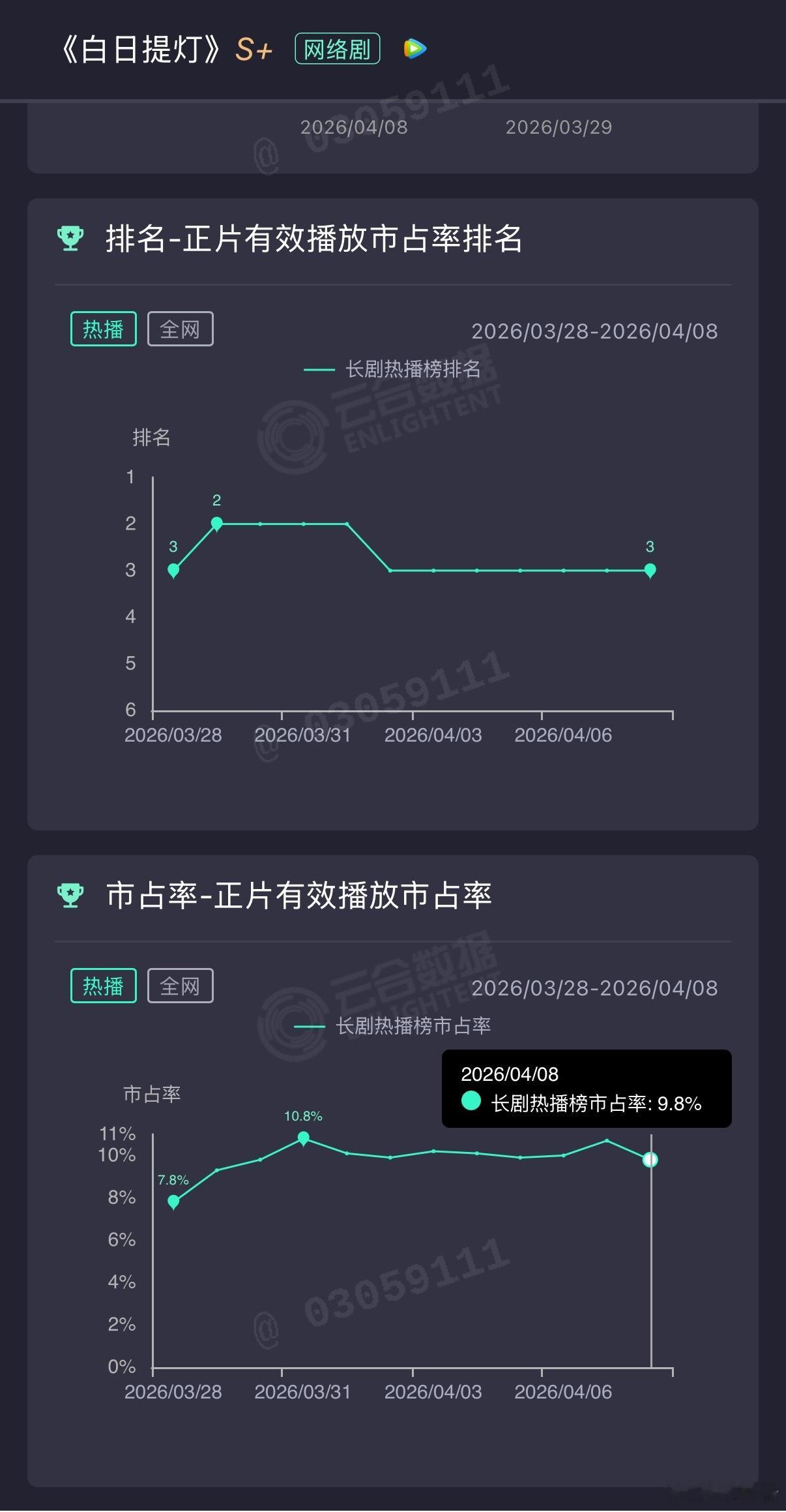 同期另一部迪丽热巴 陈飞宇《白日提灯》也是无讨论无热度,云合一直在10%上下浮动。