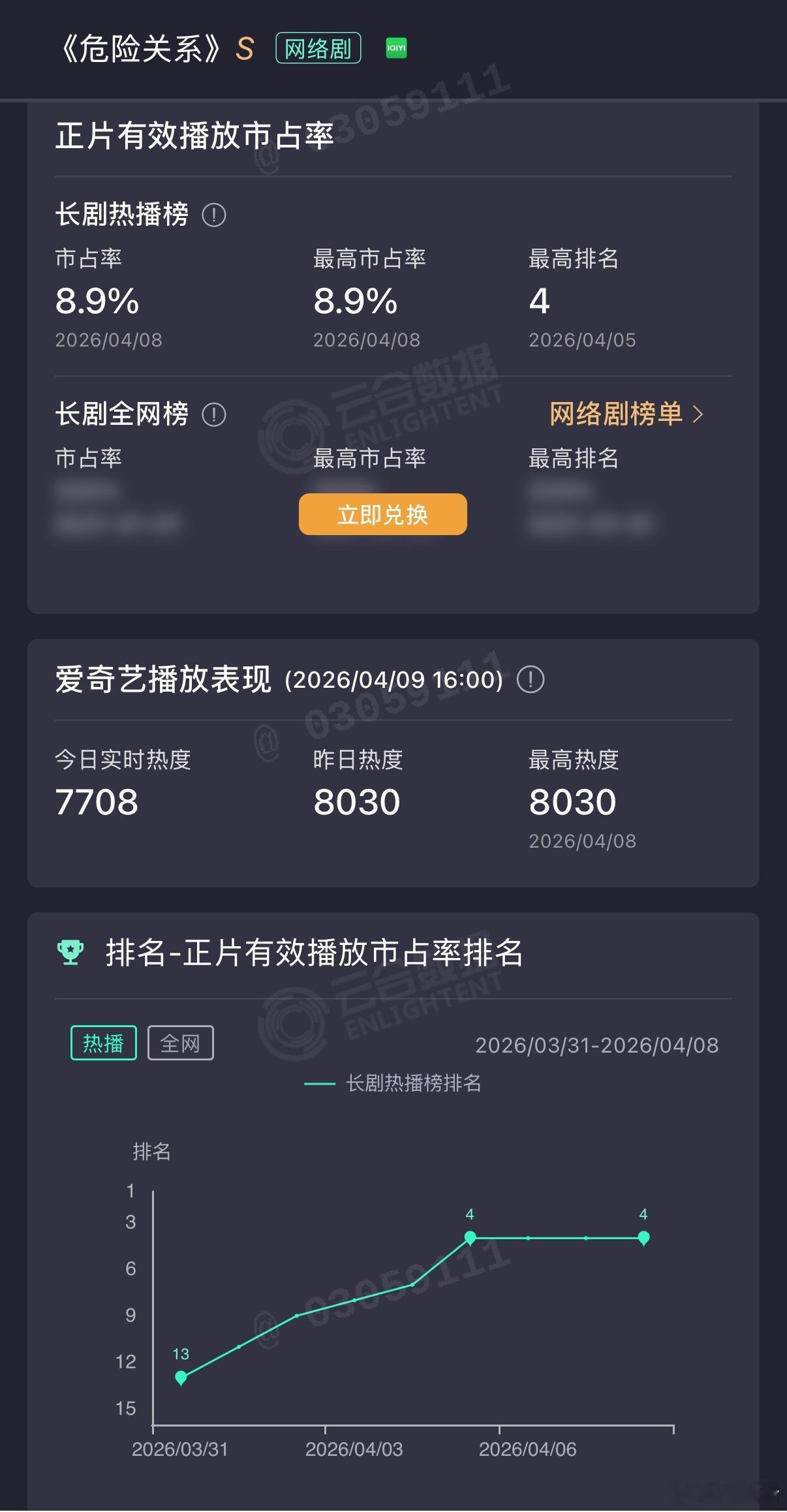 孙俪《危险关系》完结最高云合8.9%,站内热度最高8030