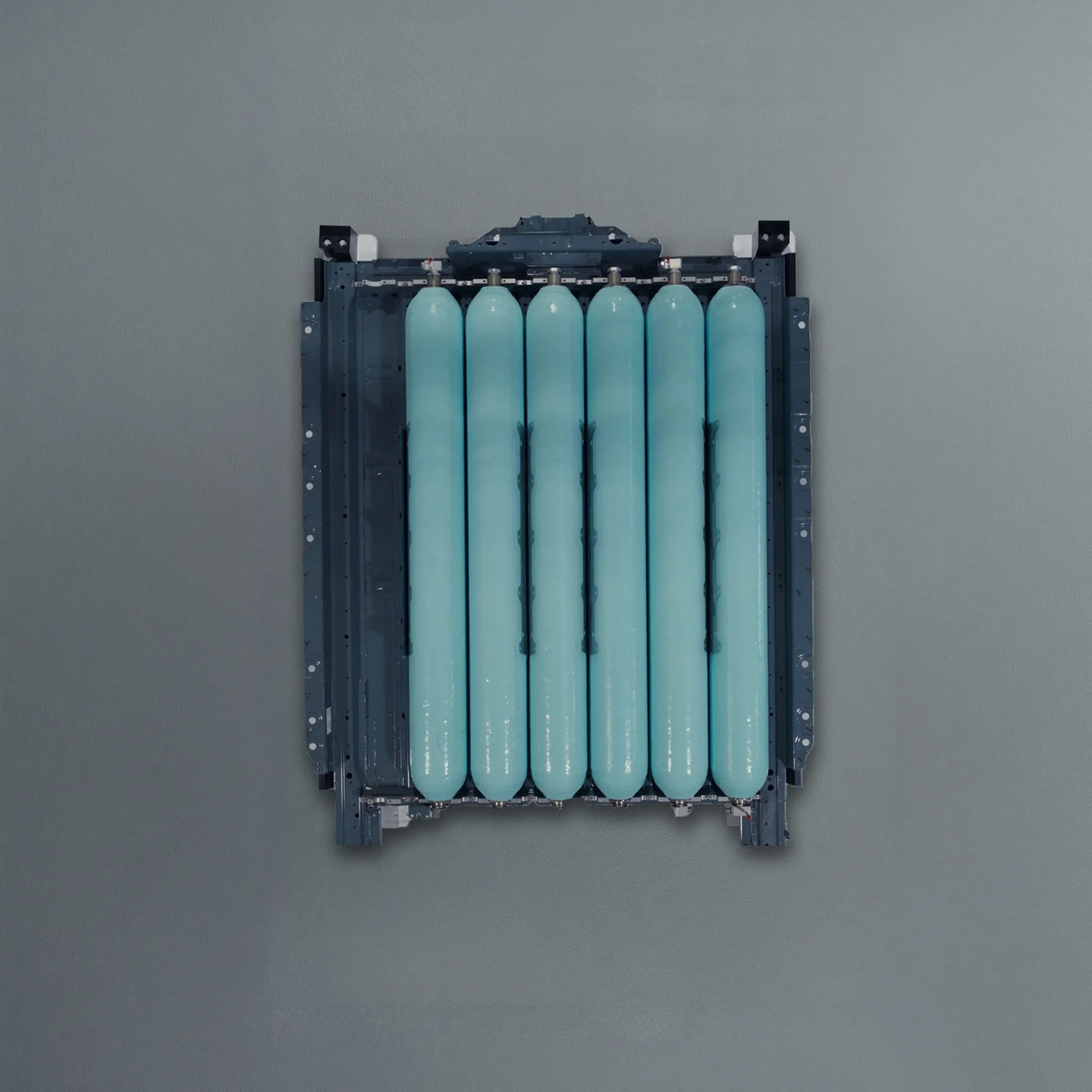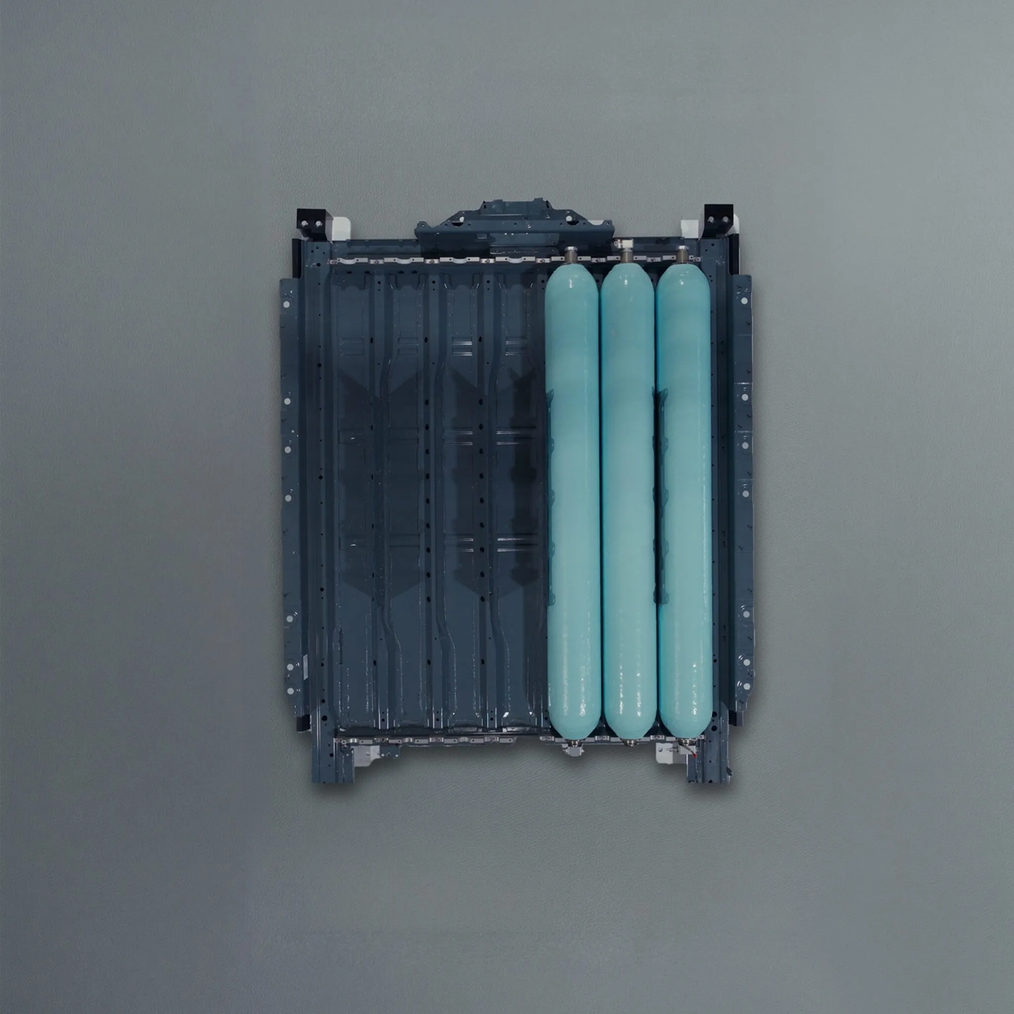 是跟丰田联合研发的第三代氢燃料电池,体积更小、功率密度更高,预计401马力电机和小容量辅助电池,储氢系统升级7罐平铺。 动力上,零百加速约5.8秒,平时靠燃料电池稳定输出,急加速时电池一块发力。综合氢耗1.19kg/百公里,在-30℃环境下30秒快速启动,WLTP续航750公里,加氢约在3-5分钟。