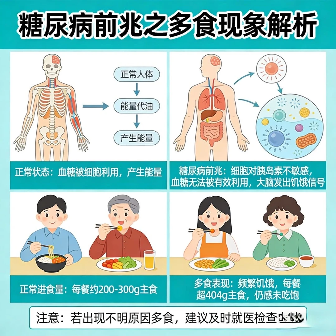 2. 多食:吃得多、饿得快,刚吃完没多久又饿