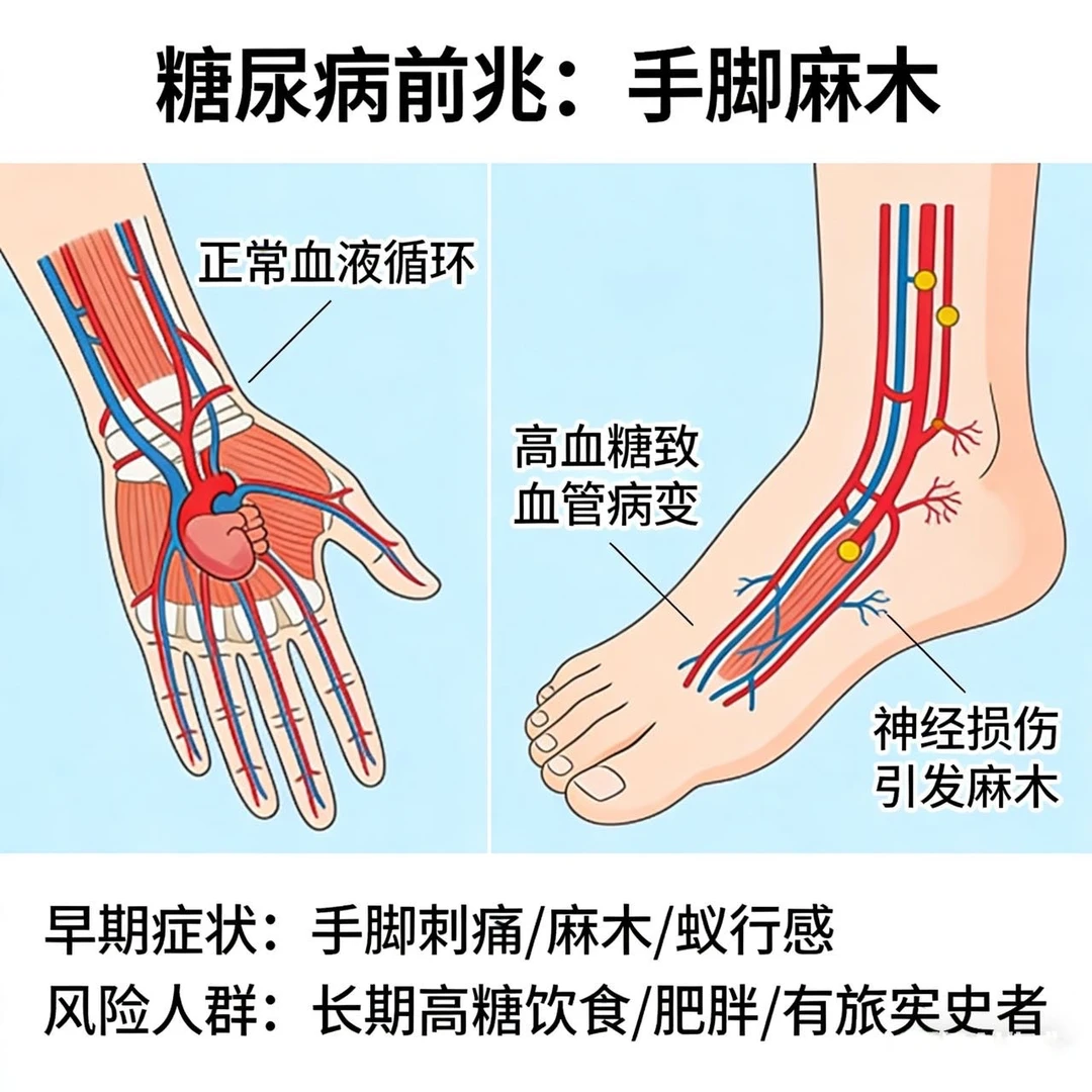 9. 手脚麻木、刺痛:手脚发麻、像蚂蚁爬,是早期神经病变