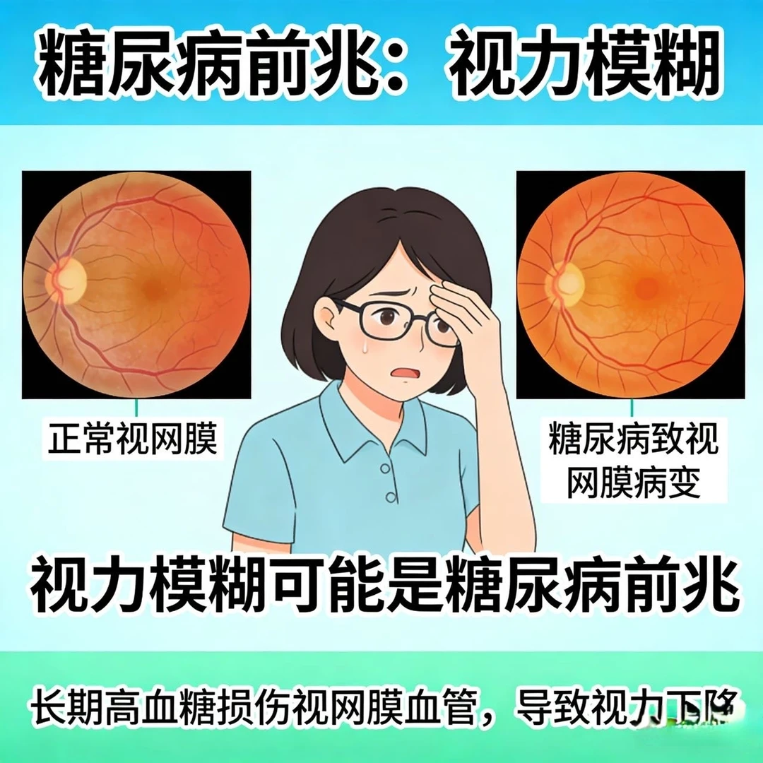6. 视力模糊、看东西不清:血糖高影响眼底,短期视力波动
