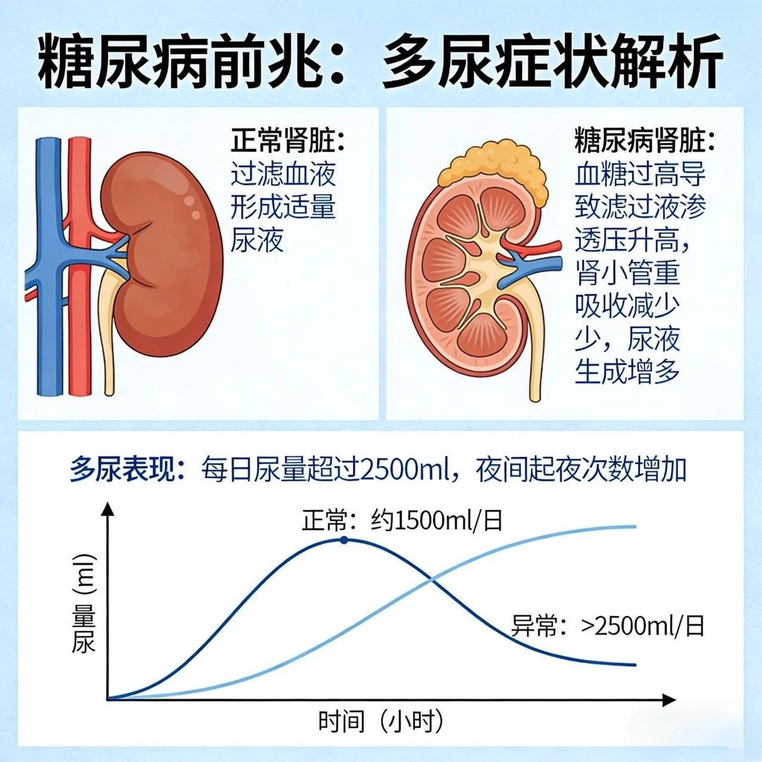 3. 多尿:小便次数明显增多,夜尿也变多