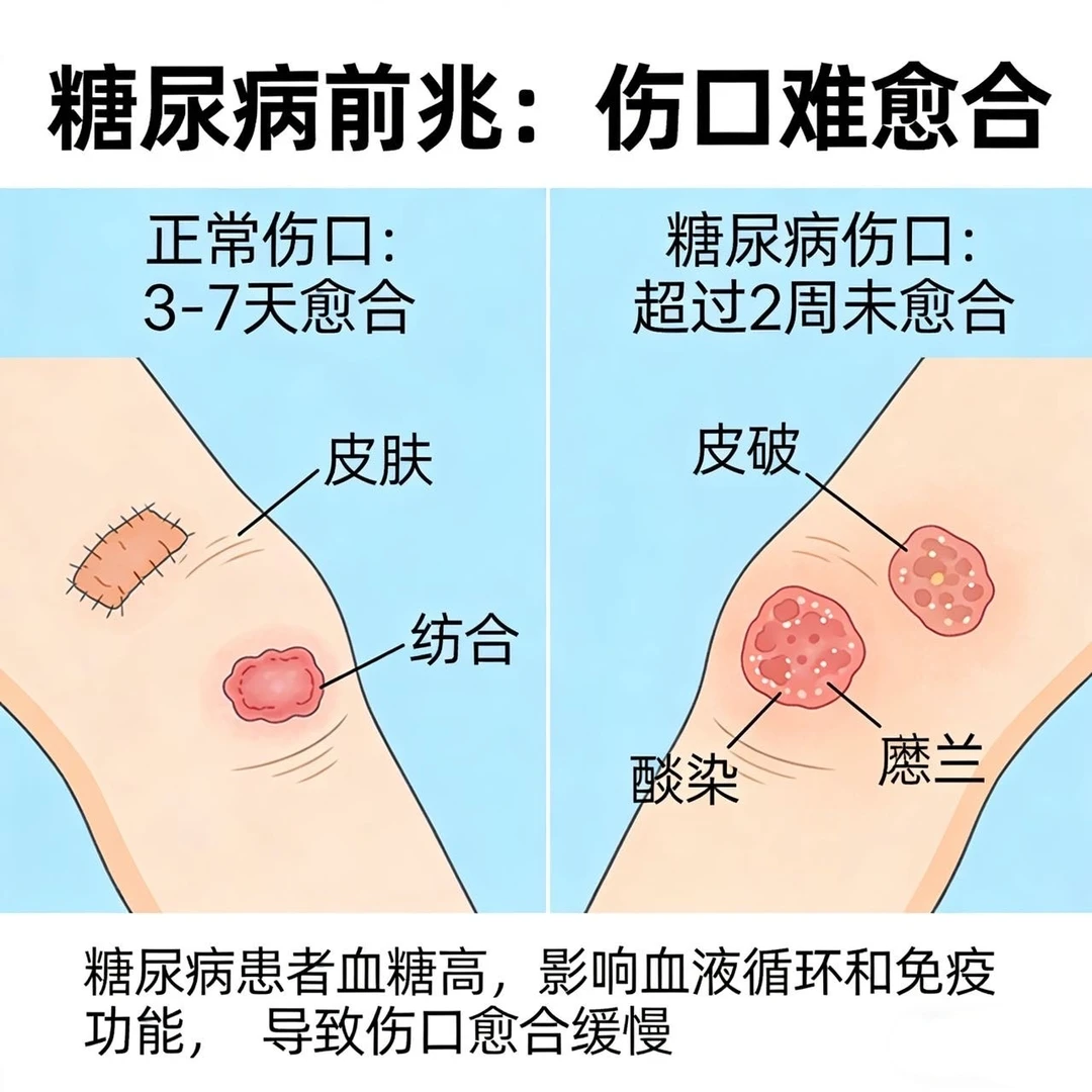 7. 伤口难愈合、反复感染:小伤口很久不好,容易长疮、发炎