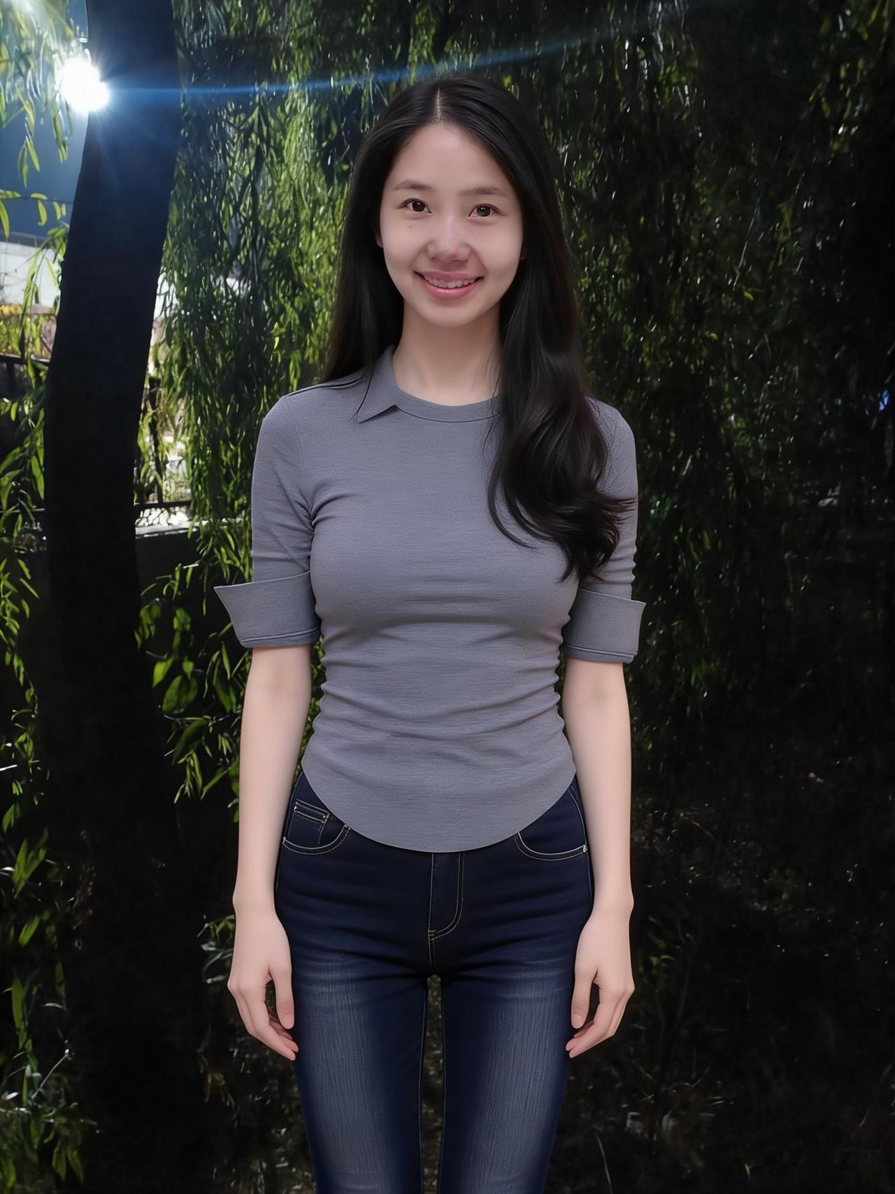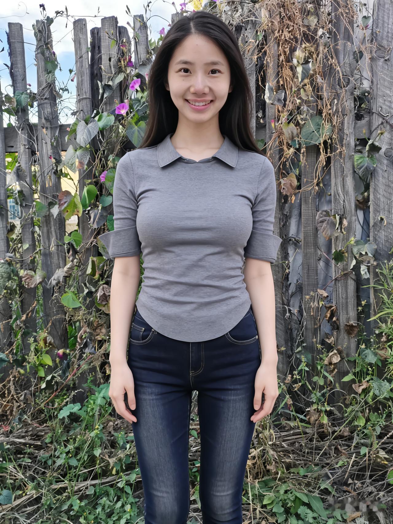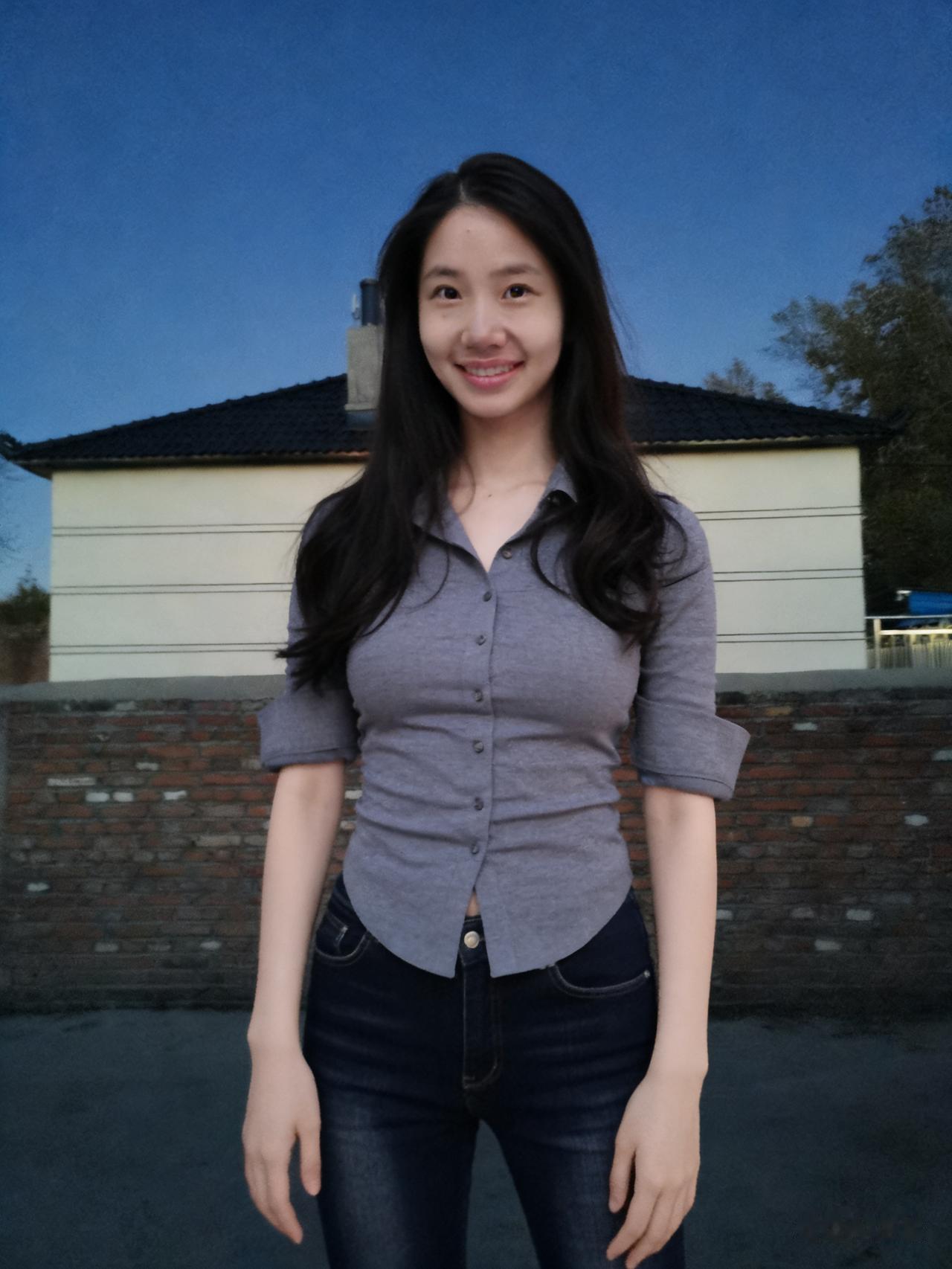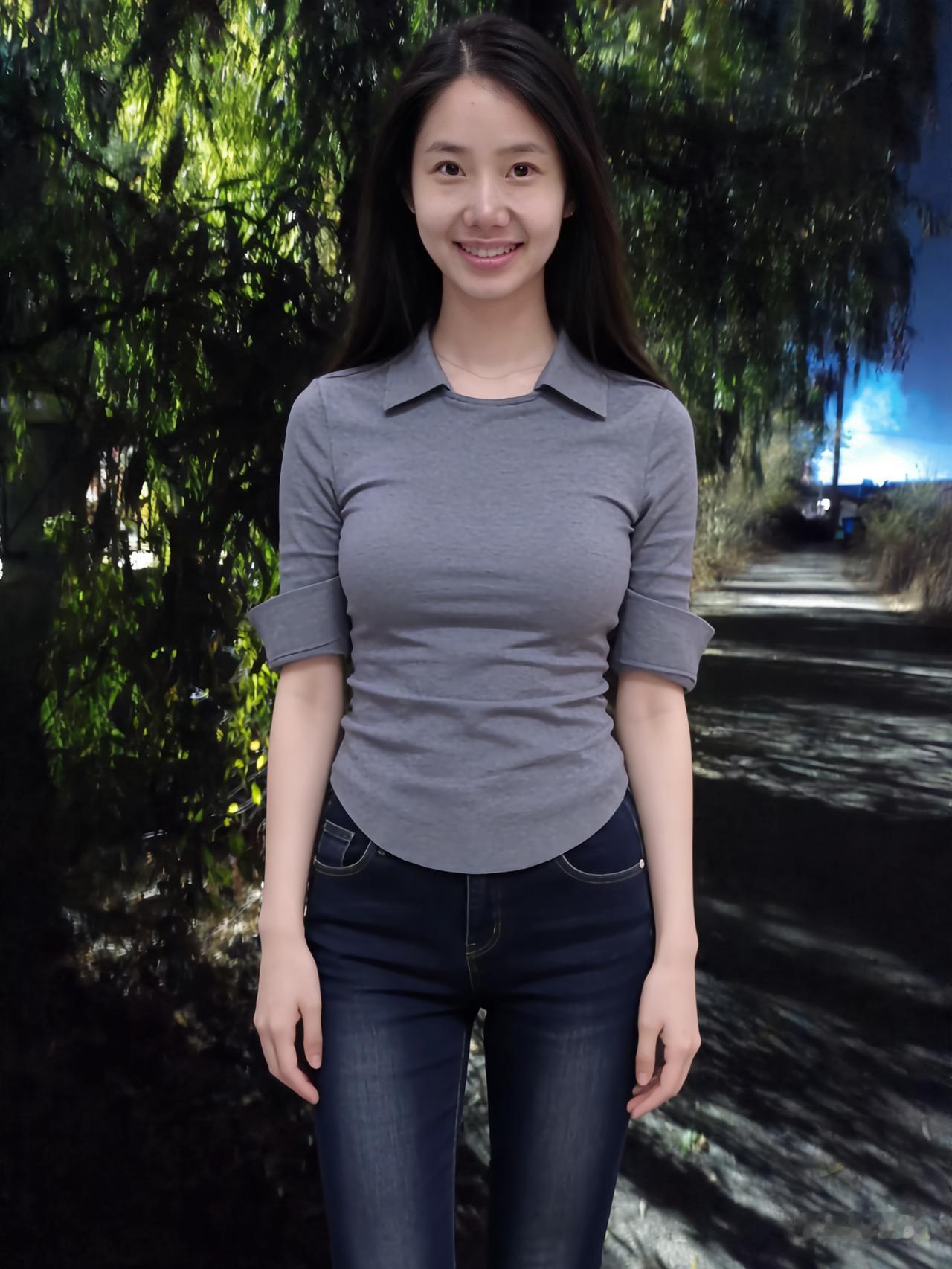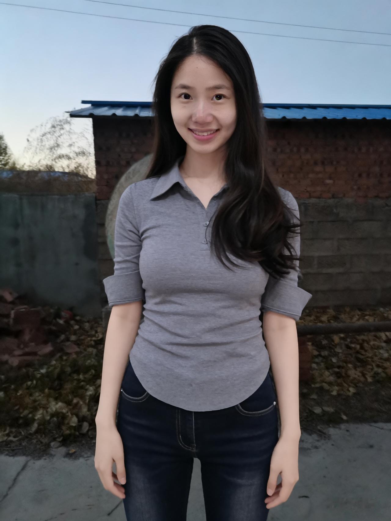 暮色揉蓝旷野风,残阳吻过瘦林东。 倩影亭亭立寒陌,紧身衣薄带霜浓。 发梢漫绾天边