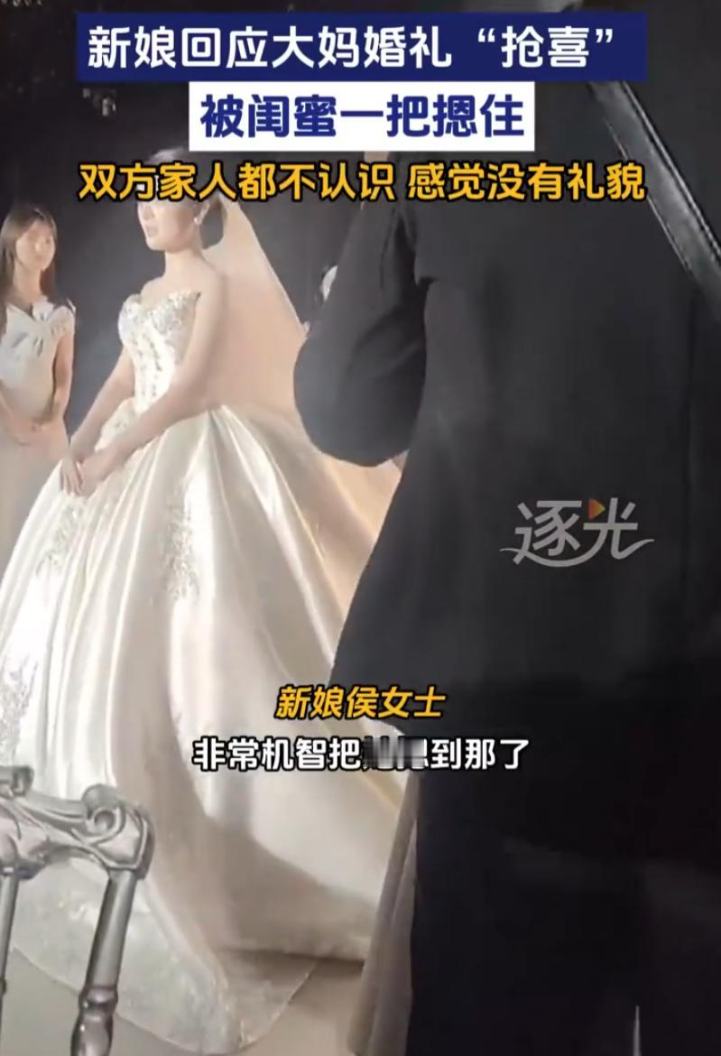 做得好!河南商丘,一对新人结婚,新娘刚准备入场,突然一名陌生大妈站起来要“抢喜”,新娘的闺蜜眼疾手快,直接给大妈按住,给大妈气的不停骂街,新娘表示:后来才知道,这叫抢喜! 婚礼现场中,侯女士穿着婚纱,正准备进场,全场目光都聚在她身上。就在这个节骨眼上,一个陌生大妈突然从旁边站起来,直奔新娘方向冲过去。动作快、目标明确,一看就不是走错路 新娘的闺蜜也是早早就注意到这位大妈,就怕这种事情发生,所以一直盯着她,眼疾手快,一把将这位大妈按住了。大妈被拦住后,情绪激动,当场骂骂咧咧,嗓门不小。婚礼现场顿时有点尴尬 后来新娘才知道,这叫“抢喜” 什么意思?就是家里有人重病、久病不愈,或者运气特别不好的,会跑到别人婚礼上“抢”一把福气。据说这样能把新人的好运“抢”走,转给自家病人 听起来像是老辈传下来的“偏方”,但在现实中,这就是明摆着给人添堵 新娘侯女士后来回忆,其实家里人早就注意到这两个陌生面孔了。表姐还专门提醒过对方,等新娘进场之后再从前面过。对方当时满口答应,好好好,行行行 结果主持人刚宣布入场,另一个同伴一拍大妈的肩膀,大妈立刻起身行动。配合默契得很,显然是有备而来 幸好闺蜜反应快,直接把人按住了。新娘顺利走上舞台,婚礼没被打断 但新娘事后说起来还是觉得后怕:如果当时真被抢了,那个瞬间就毁了。一辈子一次的婚礼,谁愿意被这种事搅和? 说实话,抛开迷信不讲,这事儿本身就极不礼貌。你是为了给家里人“抢福气”,可人家新人一辈子就这一场婚礼,凭啥要把福气让给你? 有人可能会说,农村老风俗嘛,体谅一下。可问题是,风俗也不能凌驾在别人的大喜日子之上。你家里有难处,大家都理解,但你不能把自己的难处变成对别人的冒犯。更何况,这种“抢”来的福气,真的能管用吗? 退一万步讲,就算你真信这个,能不能提前跟主家商量?哪怕私下给个红包、讨个彩头,也比当场硬闯体面得多。人家同意了,那是情分;人家不同意,你不能硬来