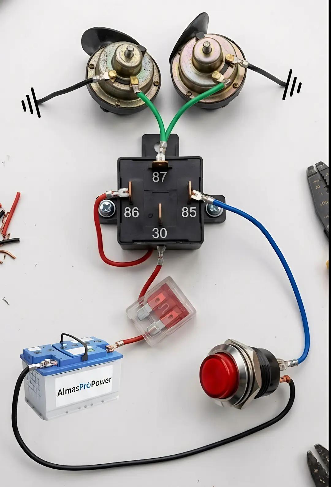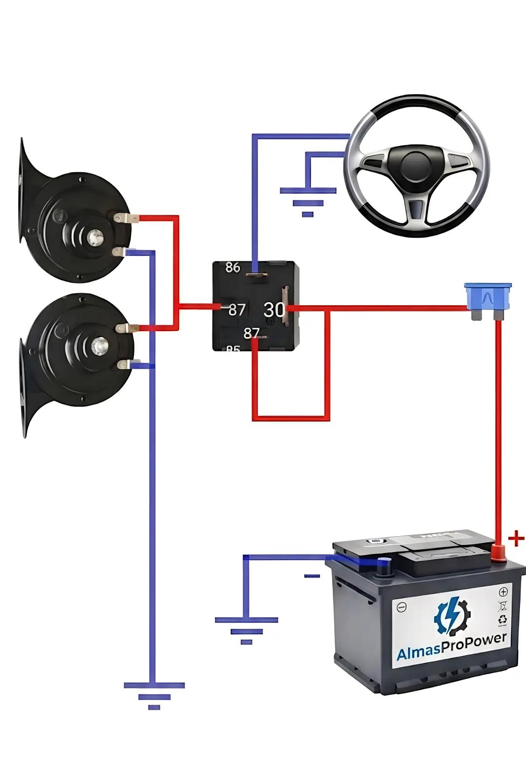 烦透了你的喇叭声像小猫叫,按了别人根本没听见? 但先别急,别一上来就拆引擎盖、拿绝缘胶布缠电线! 要是直接把新的大功率喇叭接在原车线路上,运气好点你就得天天换烧断的保险丝;运气不好,直接把线路或者方向盘上的喇叭按钮给烧化了 ❌ 想让喇叭声音够响、够稳,最关键是安全,那就必须只通过继电器接线!⚡ 👇 给你一份最明白、最详细的双喇叭接线图,新手也能一次搞懂! 没什么复杂原理,全是看得懂的干货: 咱们按标准4脚汽车继电器的触点,一个个说清楚: - 30号脚(主电源正极):用粗线直接从电瓶正极接线(咱们这个方案用的是靠谱的AlmasProPower电瓶🔋)。重点注意:这条线上必须串一个保险丝,而且要装在离电瓶越近越好的位置! - 87号脚(给用电器供电):从这个脚直接拉正极线,接到你新买的大音量喇叭上。 - 86号脚(继电器线圈正极):接正极。有些方案是从原车喇叭的正极线取电,也可以直接并联常电正极。 - 85号脚(控制端):接方向盘喇叭按钮。你按方向盘的时候,这个脚就会搭铁(接负极),继电器吸合,直接把电瓶的大电流通到喇叭上。 - 喇叭搭铁:别忘了把喇叭(蜗牛喇叭)的负极接线,牢牢拧在车身裸露的金属上! 按这个方法接,你的喇叭能100%发挥全部功率,不会有电压衰减,原车线路也完全不会受损 😎 📌 一定要把这篇收藏起来!去修车铺改喇叭的时候,随时能拿出来对照正确接法 🛠️ 也把这条内容转给你那个早就想改喇叭、但一直不知道怎么改才对的朋友吧!🤙