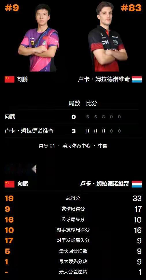 昨天乒协刚官宣世乒赛名额,今天队内选拔出的队员就打脸了乒协教练组,太原挑战赛男单正赛首轮 赛会一号种子向鹏0一3一轮游 输给排名83名的卢森堡队员卢卡6一11,5一11,8一11[捂脸] 本来球迷们对教练组队内选拔看内战就有意见,这也太不给力教练组太难受了,秦志戬总教练就在太原现场。其实教练组愿意给温瑞博名额,奈何向鹏排名靠前没有说服力,地方队也不让没办法队内比,奈何温瑞博队内选拔不争气。愁死秦志戬指导了,全是些不争气的孩子[捂脸][捂脸][捂脸]
