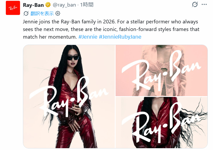 2026年,Jennie加入雷朋大家庭。