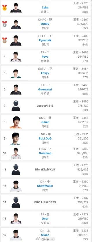 跟韩服排位统计小程序显示,Zeka再次登顶韩服第一。此前Zeka曾在三月初登顶过韩服第一,三月底Zeka重回韩服第一后一直霸榜至今。
