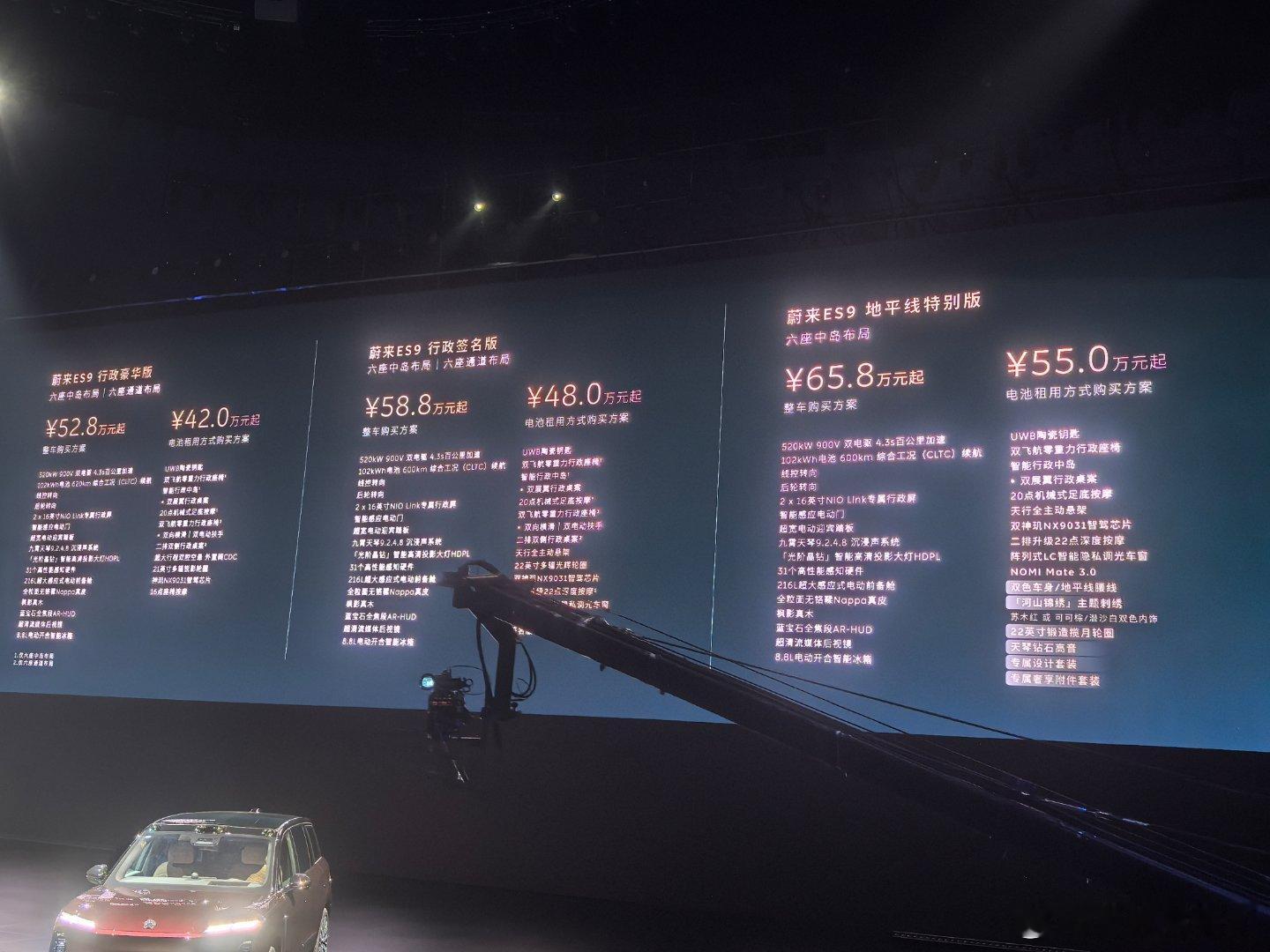 蔚来这是吸取了ET9定价的教训,也借鉴了ES8成功的秘籍,把ES9的预售定价,拉到了42万起(租电池版)!