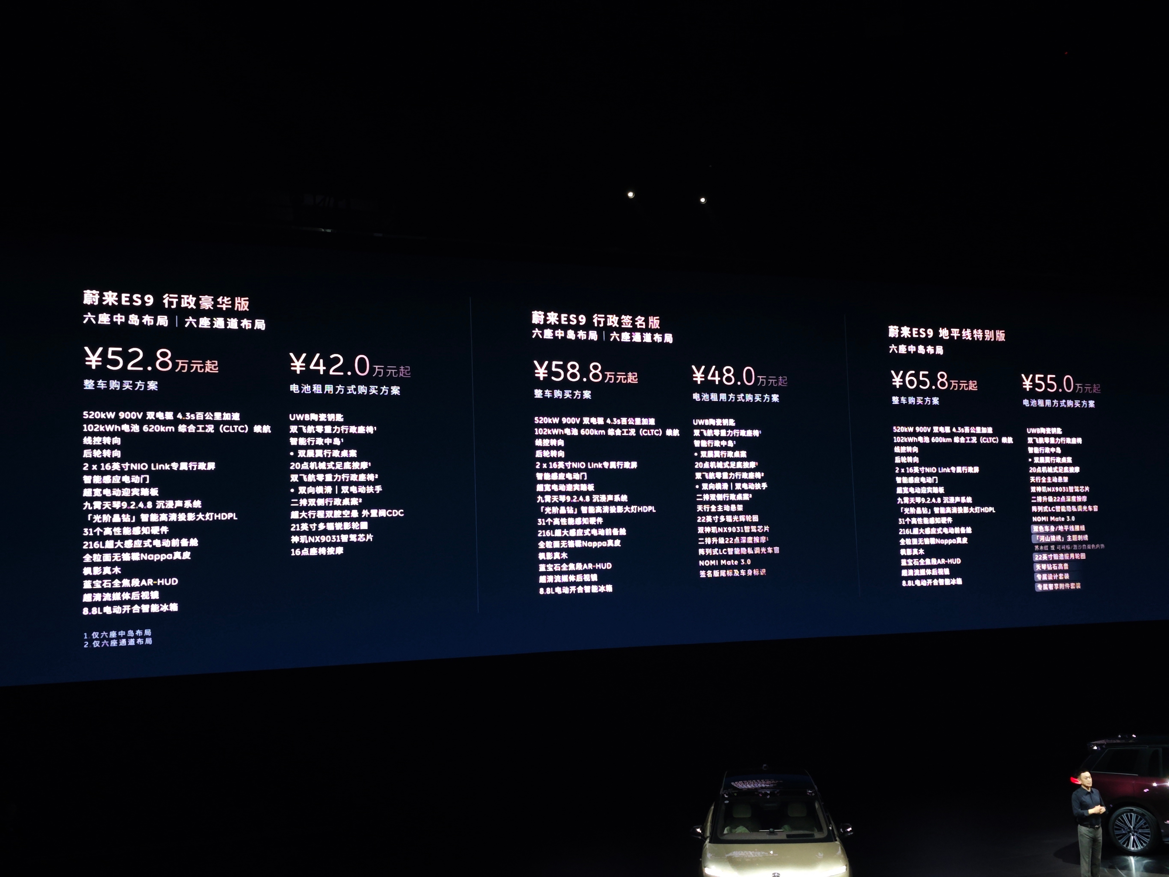 蔚来es9预售价格出炉,加起来十几万的几项配置,全部标配!虽然有点夸张了,但是诚意到了,租电版最低42万,这价格真吓人,但是对于真正用户画像的人来说,估计全价买了,52.8万买一个面子里子顶级的产品!蔚来ES9蔚来es9中国元素