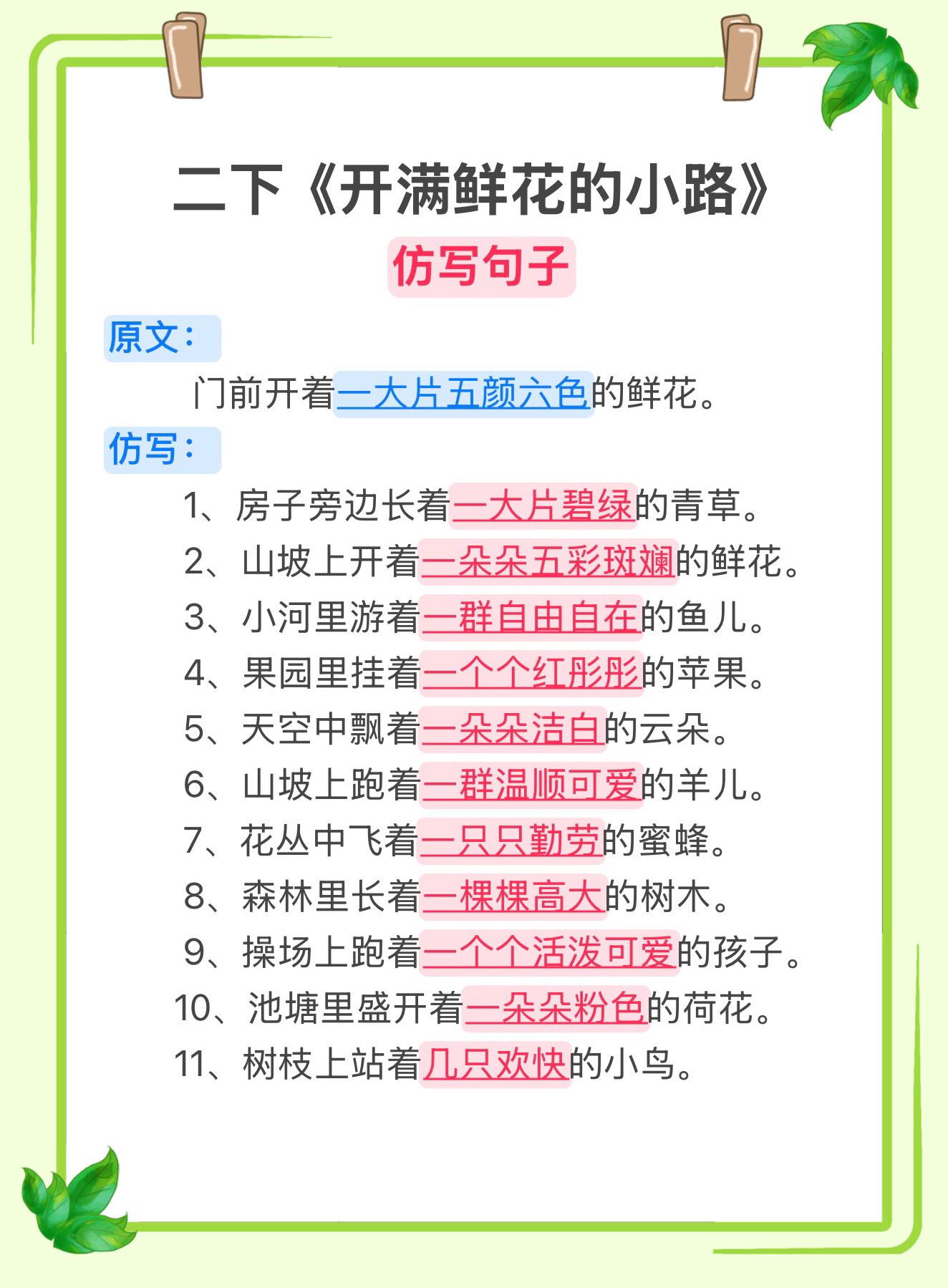 二下《开满鲜花的小路》仿写句子~家长收藏,让孩子读一读记一记