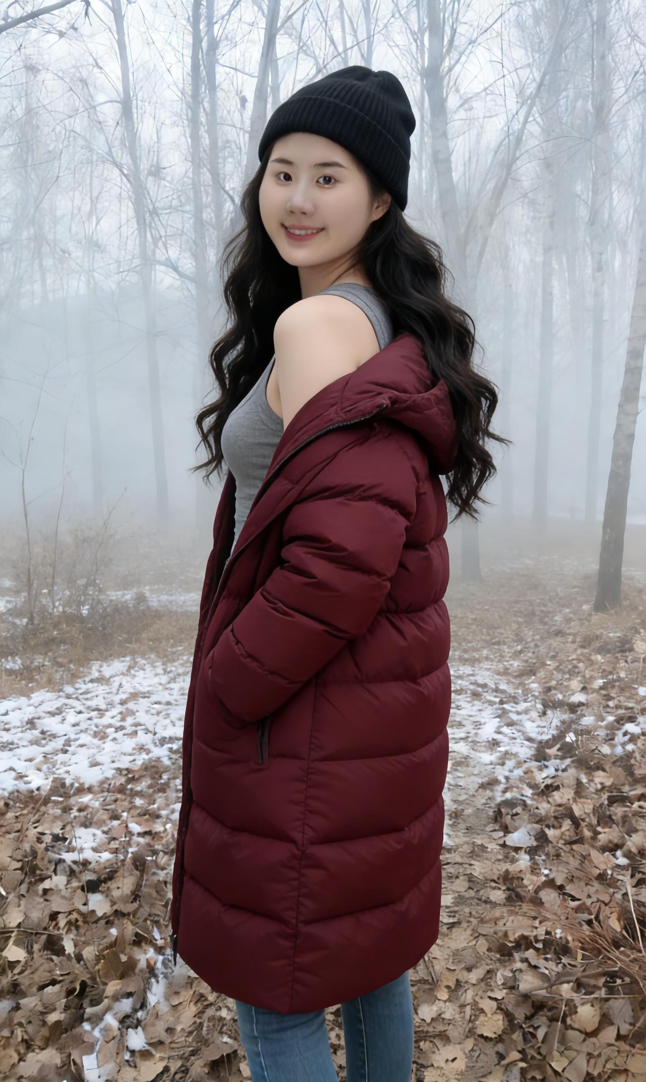 迷雾笼寒树,残雪覆荒丘。 羽衣裹瘦影,薄衫衬清眸。 林深迷野径,烟淡锁汀洲。 立处千叠云,望中万缕愁。 风微摇落木,露冷湿轻裘。 心随残叶远,意共晓光流。