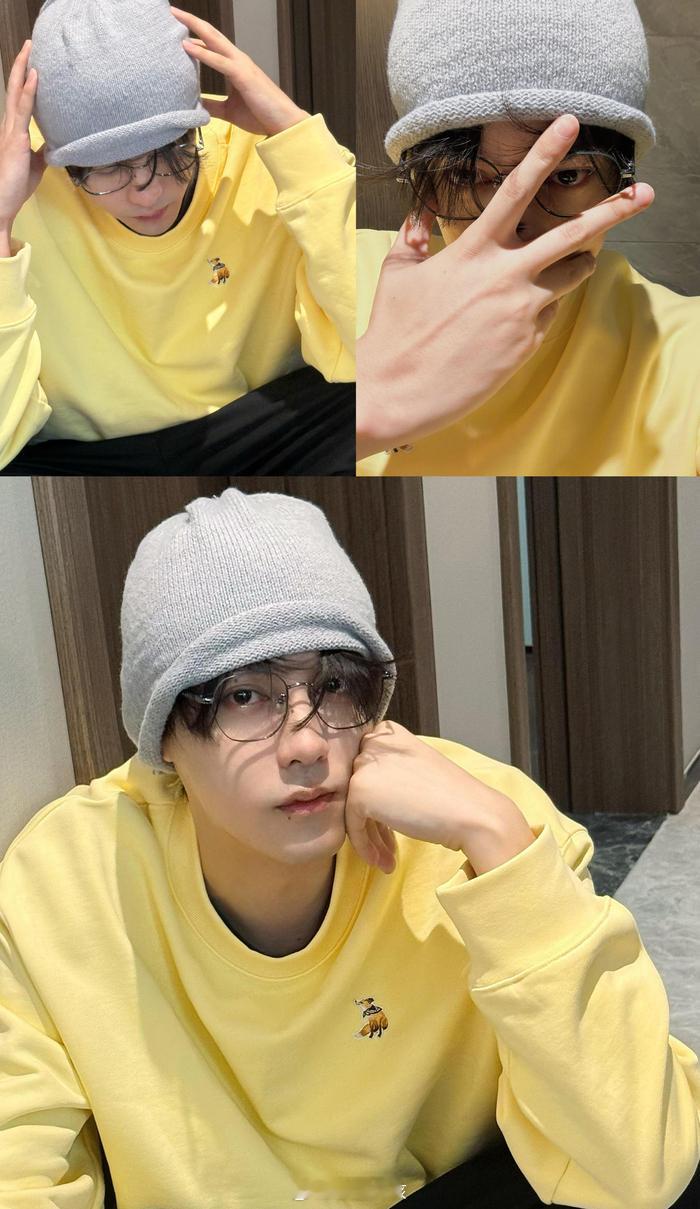 田栩宁穿柠檬黄营业卫衣+冷帽+金丝眼镜,春日少年感拉满,是把“柠檬水”随身携带的