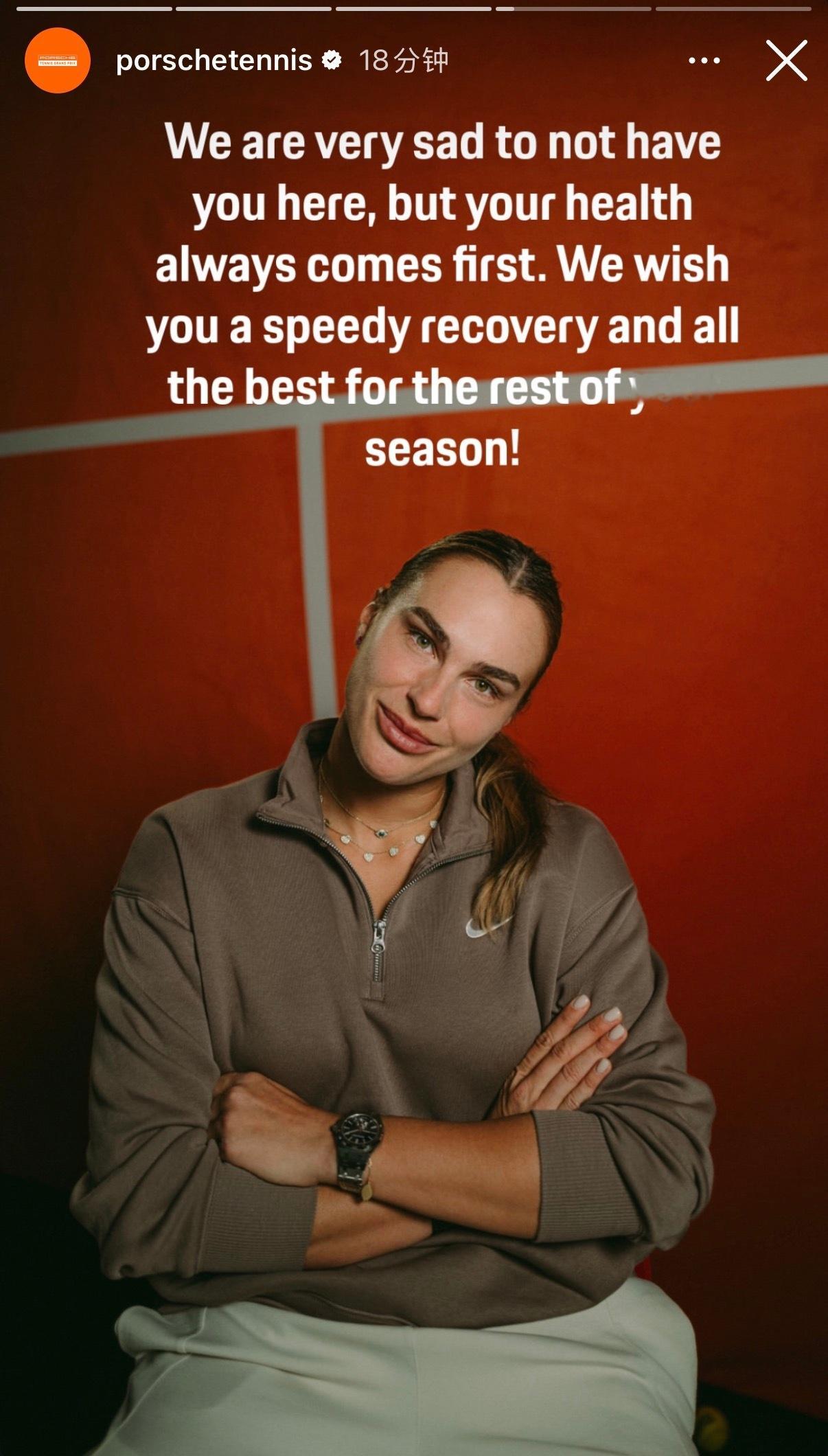 🐯萨巴:“你好,斯图加特:非常遗憾地告诉大家,我将无法参加今年的保时捷网球大奖赛。