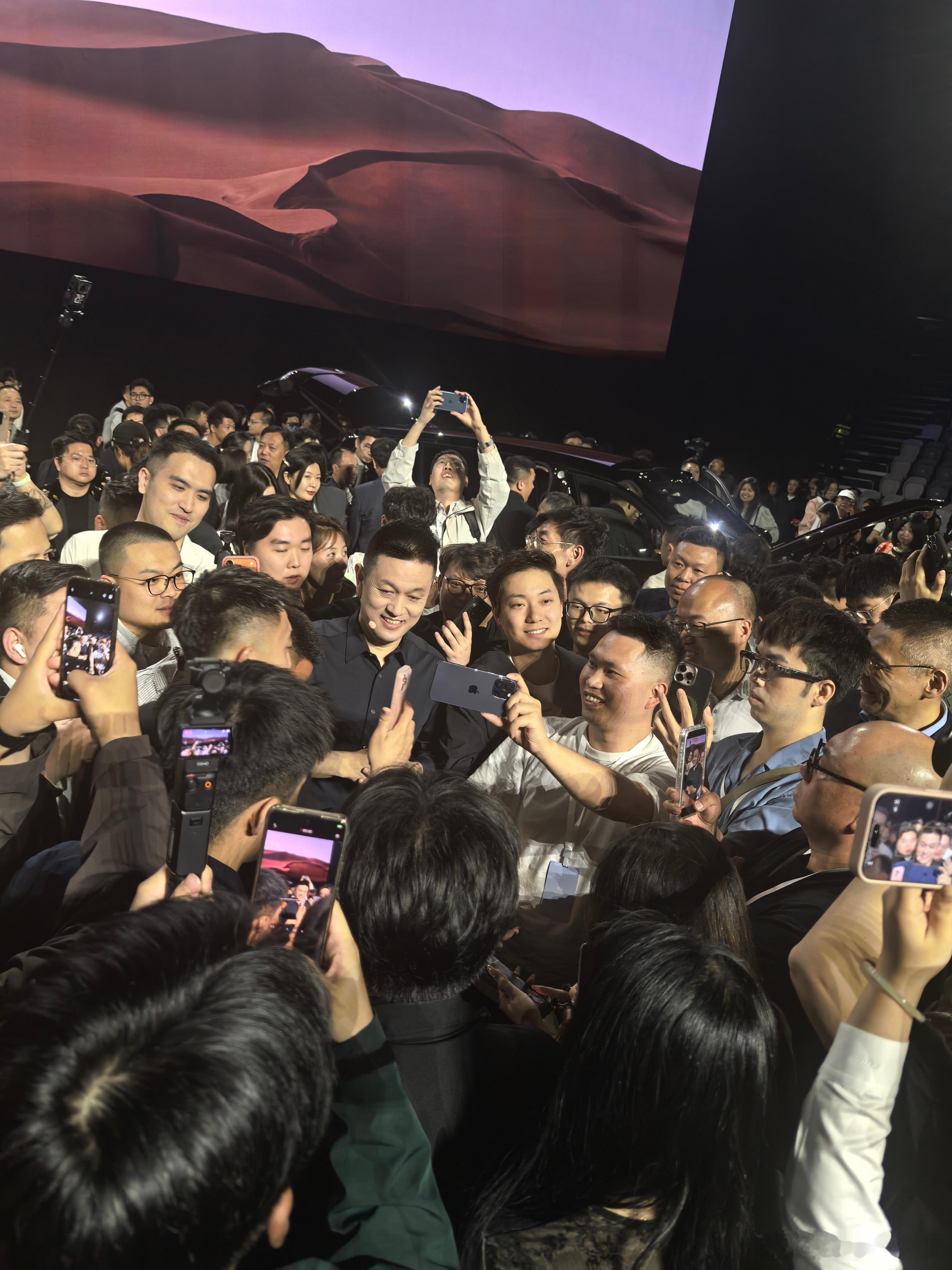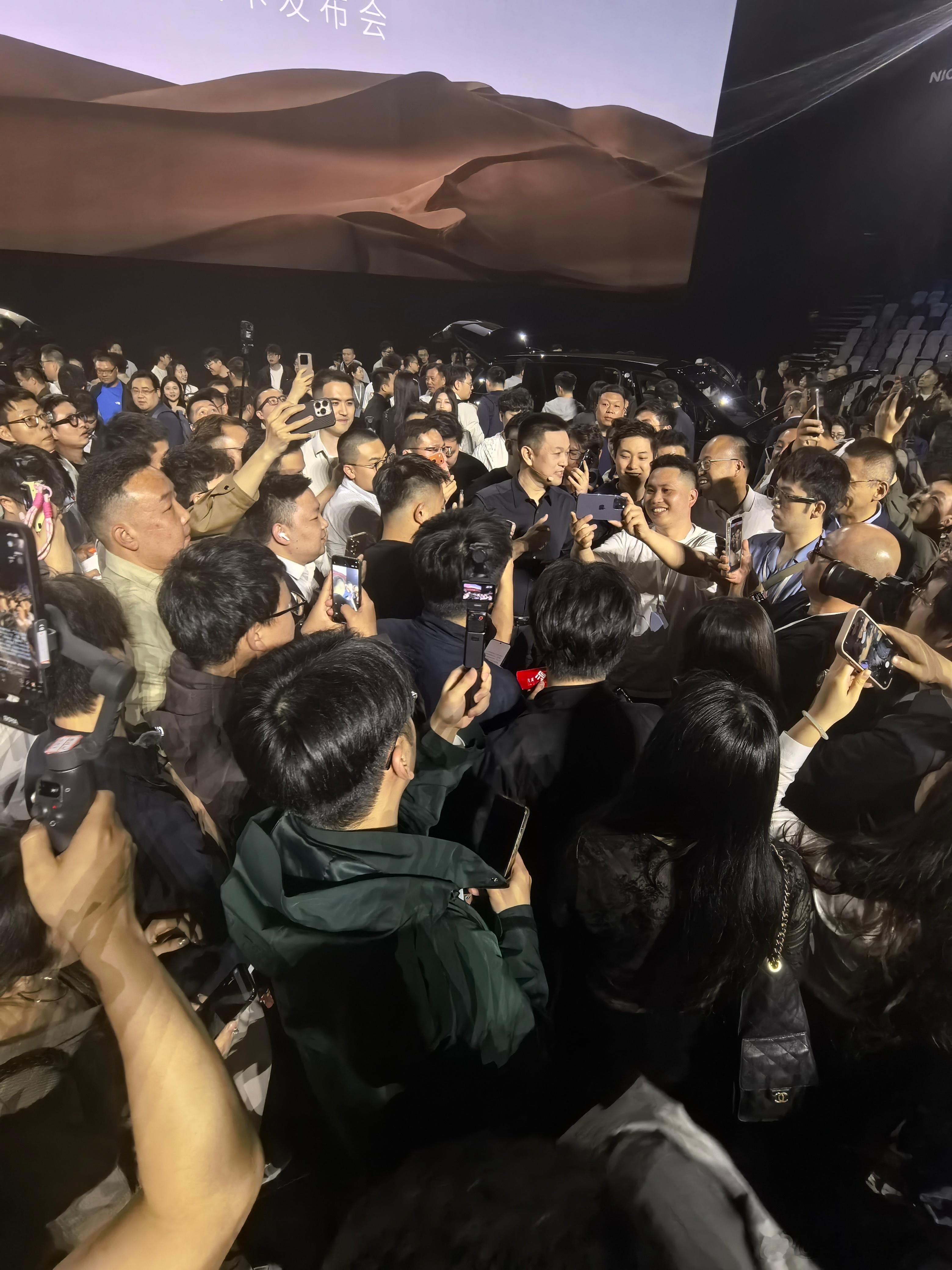 李斌每场发布会后的保留项目,大合影抖音!