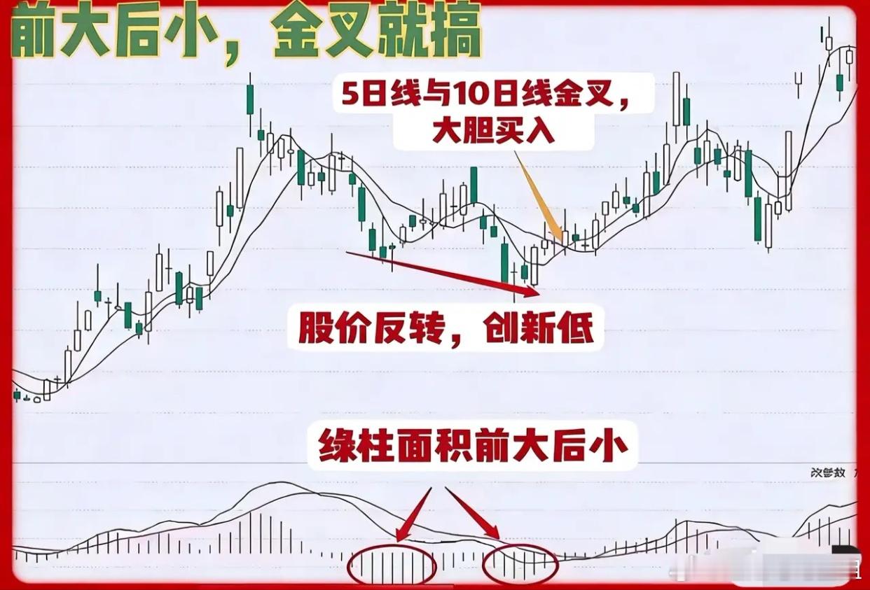 操作严格遵循两句口诀,没有半点模糊空间:进场:前大后小,金叉就搞,前提是量能必须温和放大,量价不配合,哪怕MACD金叉也坚决不入场,这里的前大后小,就是前期阳线放量、后期回调缩量,走势企稳才是有效信号;离场:前高后低,放量就跑,一旦冲高回落放量下跌,或是MACD死叉,立刻离场观望,绝不扛单、不心存侥幸,哪怕少赚一点,也要守住本金,不贪心、不恋战。