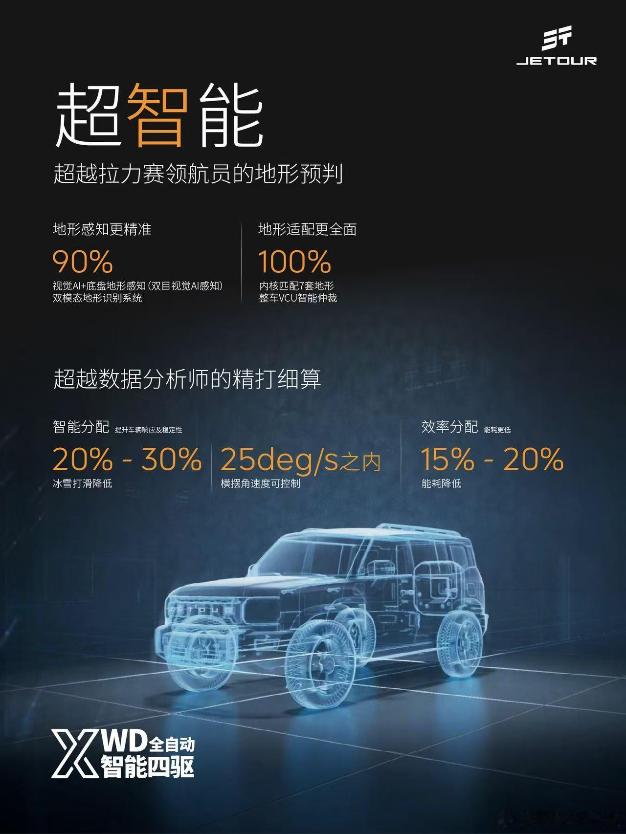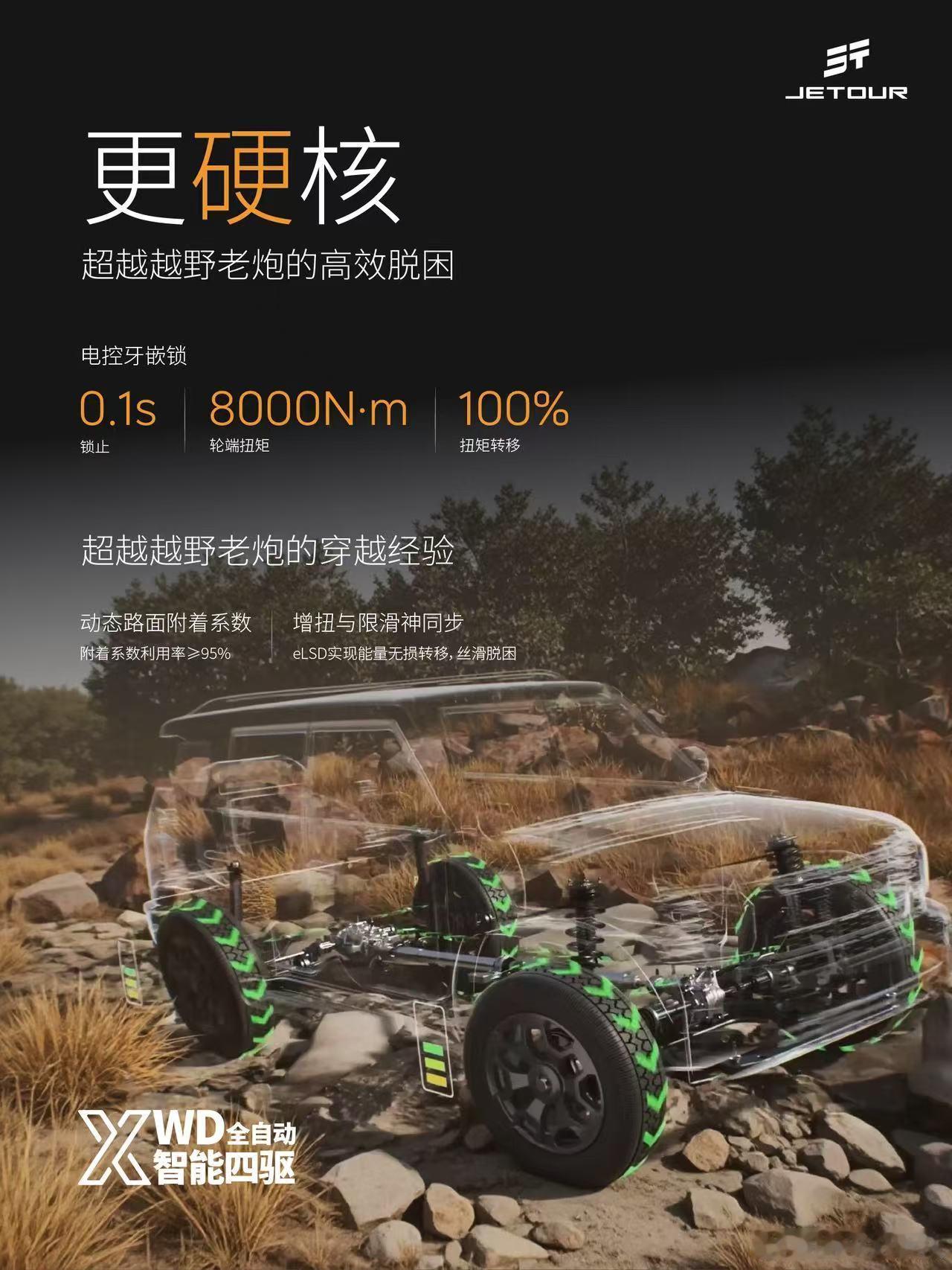 捷途XWD全民皆爱野第一次好想尝试一下,7+X智能模式!我们只要一键启动“X模式”,自动适配沙地、泥地、岩石等10余种地形,无需手动切换差速锁或分动箱。对比传统越野车需停车操作,XWD显著简化流程,对我这种新手太友好了! 捷途旅行者捷途旅行者PLUS捷途旅行者CDM捷途汽车