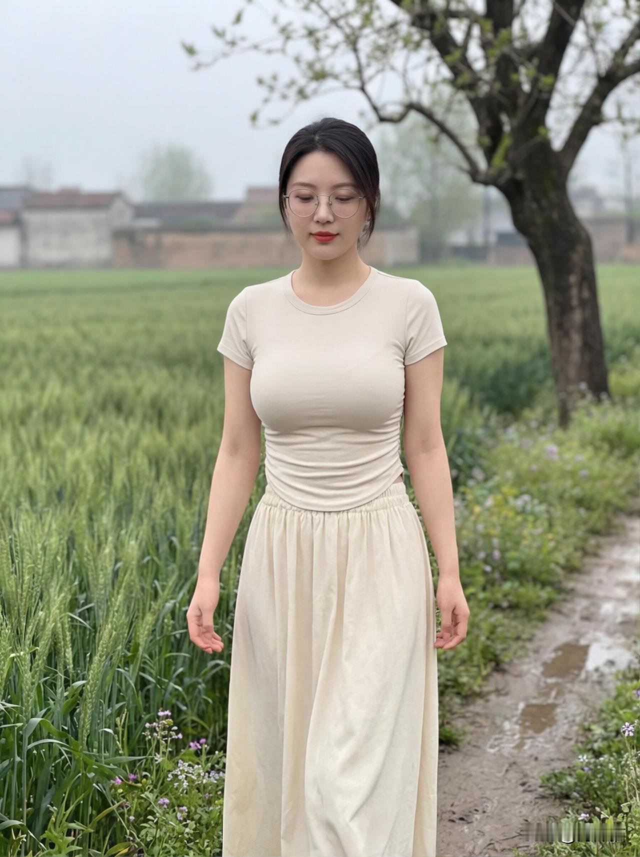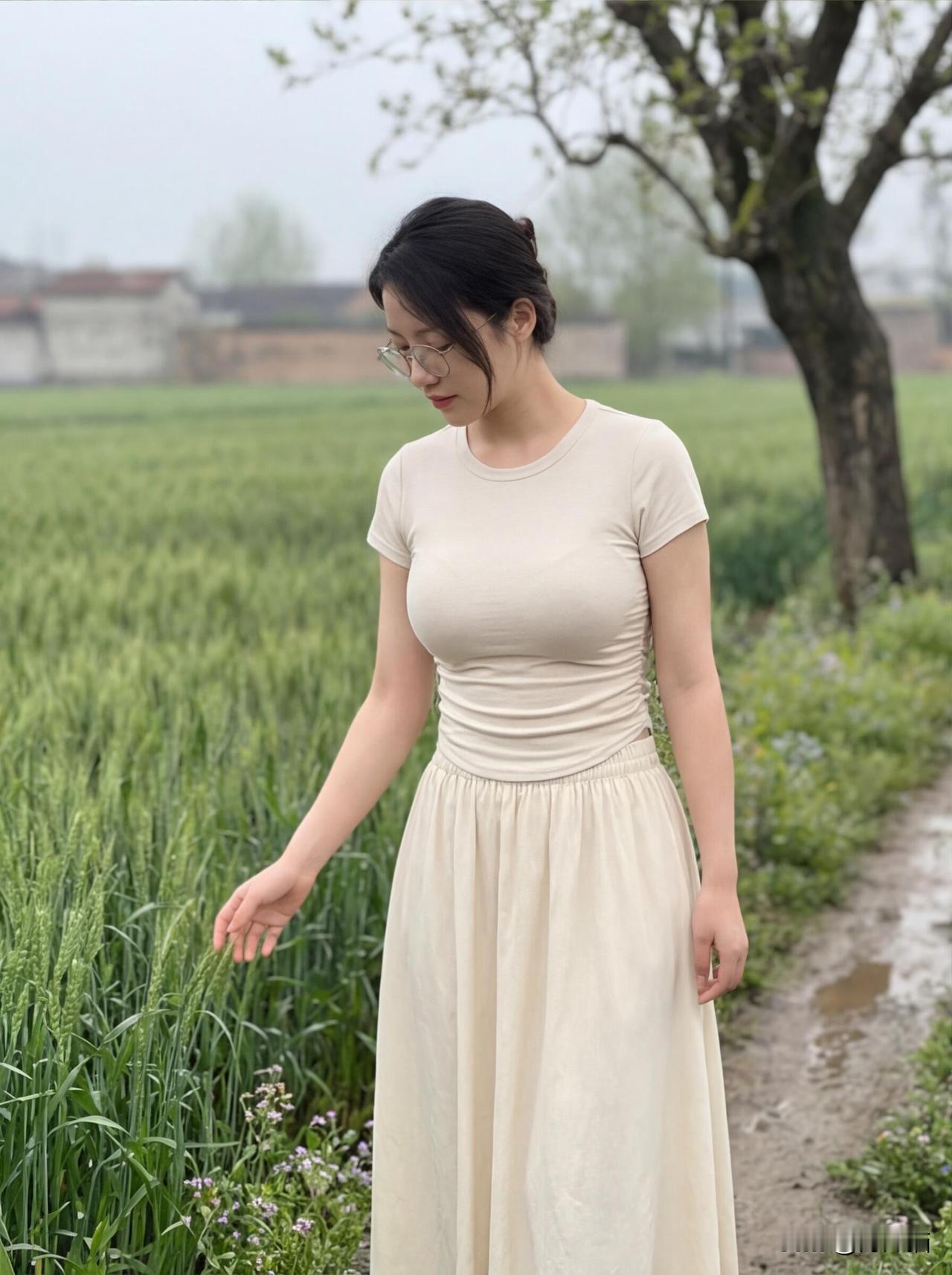麦田里的春日信笺 春日在田野漫步,轻纱裙摆随风飘逸,感受着春天万物盛开带来的喜悦。 雨雾刚歇的乡野,风里还裹着泥土与青草的湿润气息。她站在田埂边,米白色的裙裾被风轻轻掀起,像一片温柔的云,落在青绿色的麦浪之间。 眼镜后的目光低垂时,是对这片土地的温柔致意;抬眼望向远方时,又藏着对春日的无限期许。她抬手轻触麦芒,指尖拂过的不仅是抽穗的麦苗,更是整个春天的生机与浪漫。远处的村舍在薄雾里若隐若现,老树枝桠抽出新芽,田埂边的野花缀着水珠,一切都慢了下来。 没有城市的喧嚣,只有麦田的沙沙声、风的低语,和她眼底的安然。这是独属于乡野的治愈时刻,是春日写给人间的温柔信笺,每一寸风景,都在诉说着生活最本真的美好。 图片来源于网络,侵权删。
