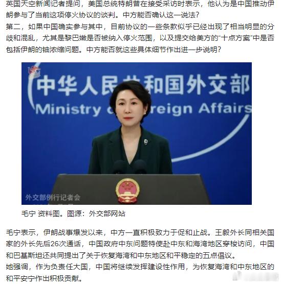 昨天一天再翻《大外交》,里面讲了很多一战、二战那些细碎真实的事,叹为观止,建议大家认真把这样的大部头读完,会对现在的形势更明朗。伊朗停火,是中国的功劳吗?我们有必要去抢这功劳吗?动脑筋想一想,这是功劳,还是屎盆子?我们先看看回应是什么态度。读不出来对吧,好像是,好像又不是。告诉大家,好像是好像又不是=不是。我们没有接茬,因为第一个问题有毒,第二个问题有剧毒,全TM是给你挖坑的。我问大家几个问题: