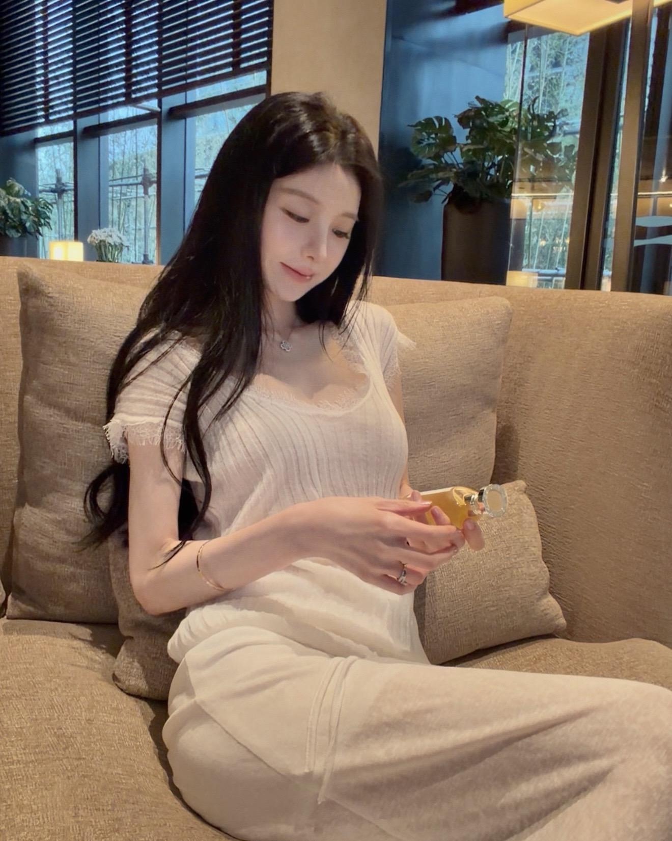 吴千语真的是随便一件黑格子衬衣加牛仔裤就特别的有型,她真的是十足的“老钱风”,越
