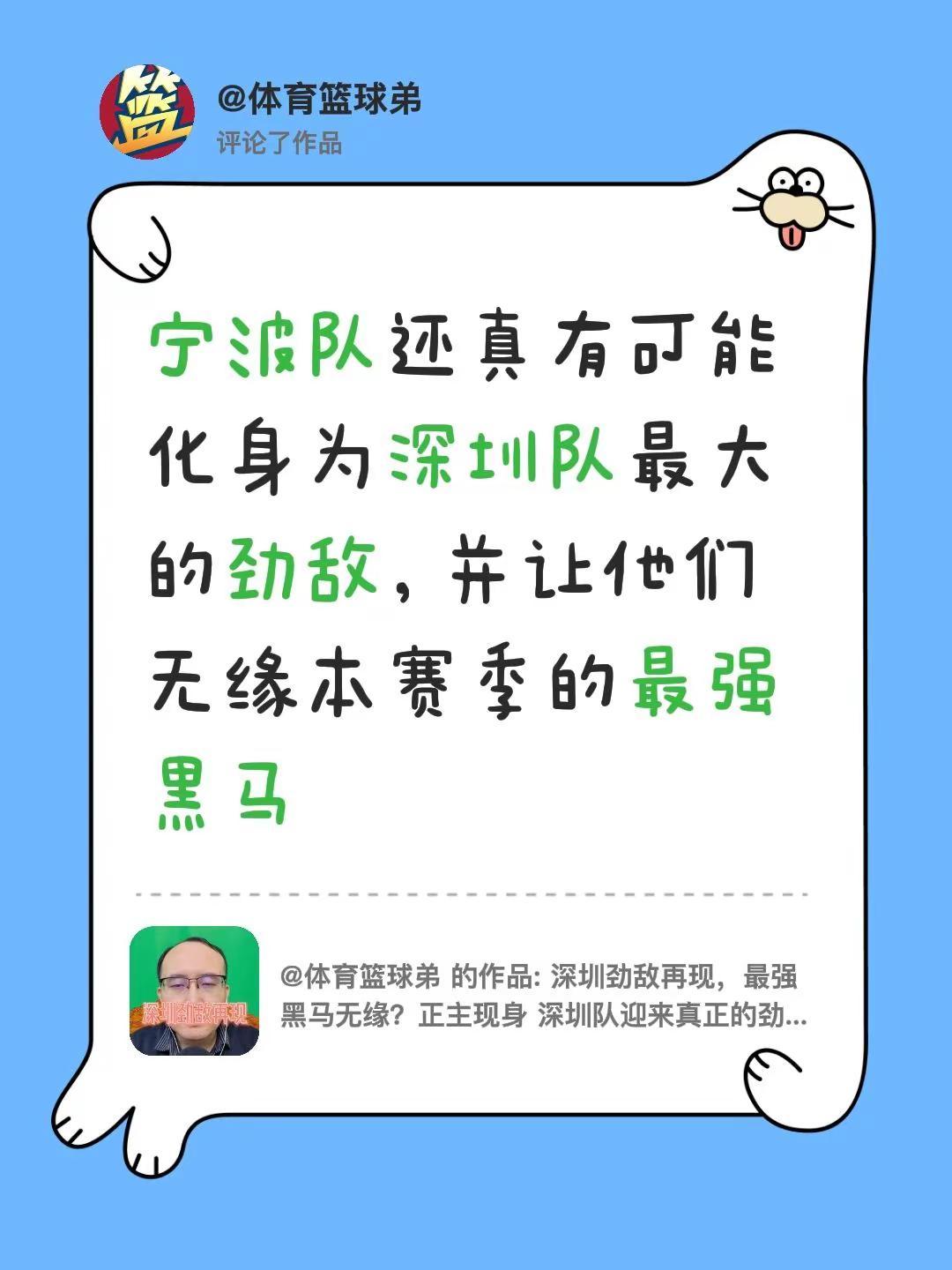 我评论了@体育篮球弟 的作品:宁波队还真有可能化身为深圳队最大的劲敌,并让他们无