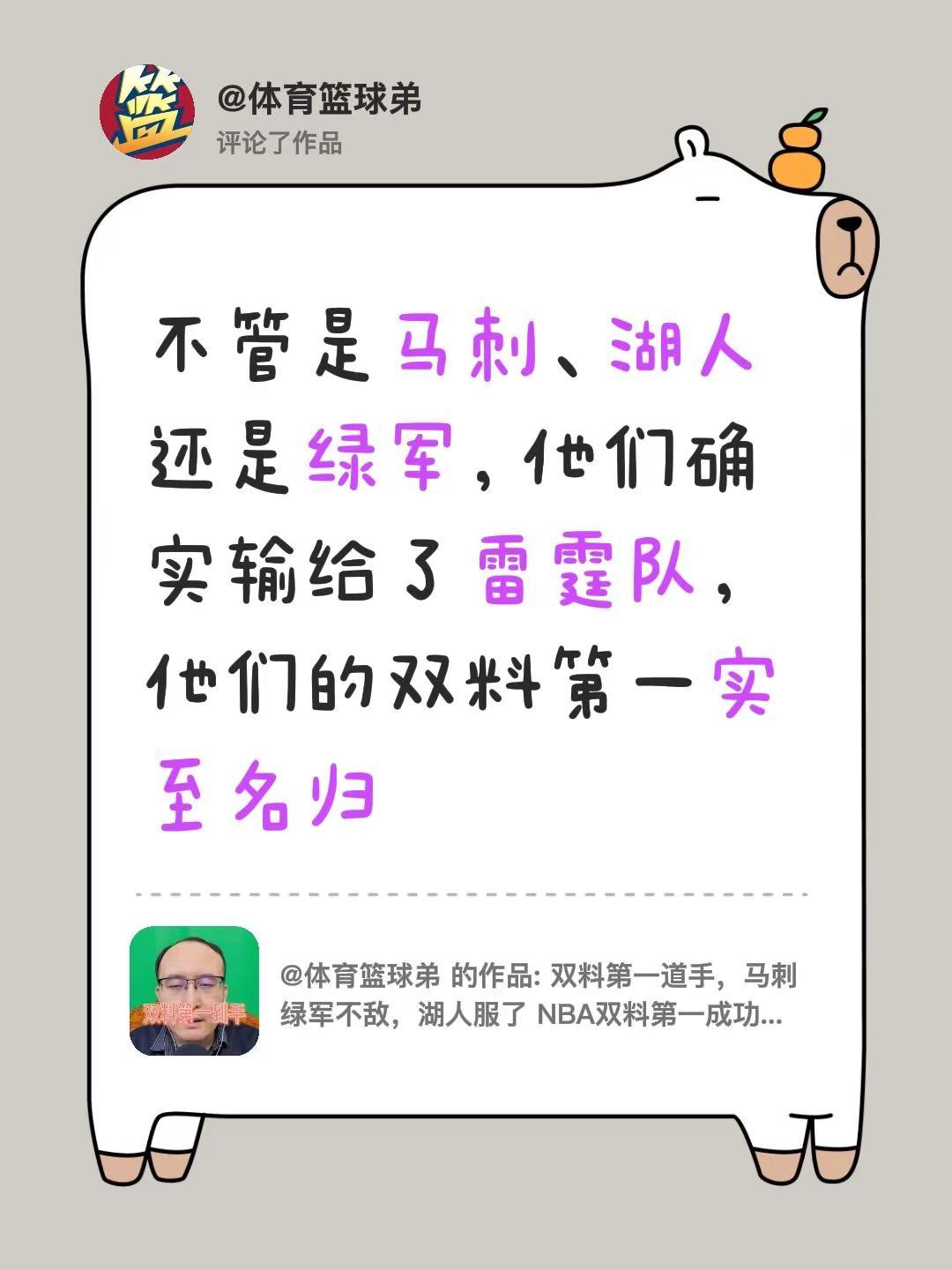 我评论了@体育篮球弟 的作品:不管是马刺、湖人还是绿军,他们确实输给了雷霆队,他们的双料第一实至名归