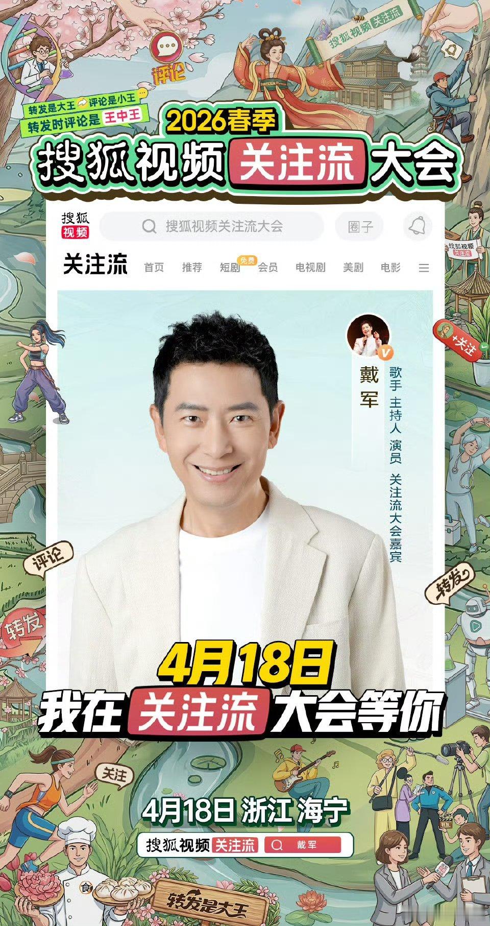播主赛道让戴军闯进来了每次重温戴军那段名场面都笑不停,人气回温也是理所当然。这次关注流大会官宣他,期待4月18日带来更多爆笑瞬间。