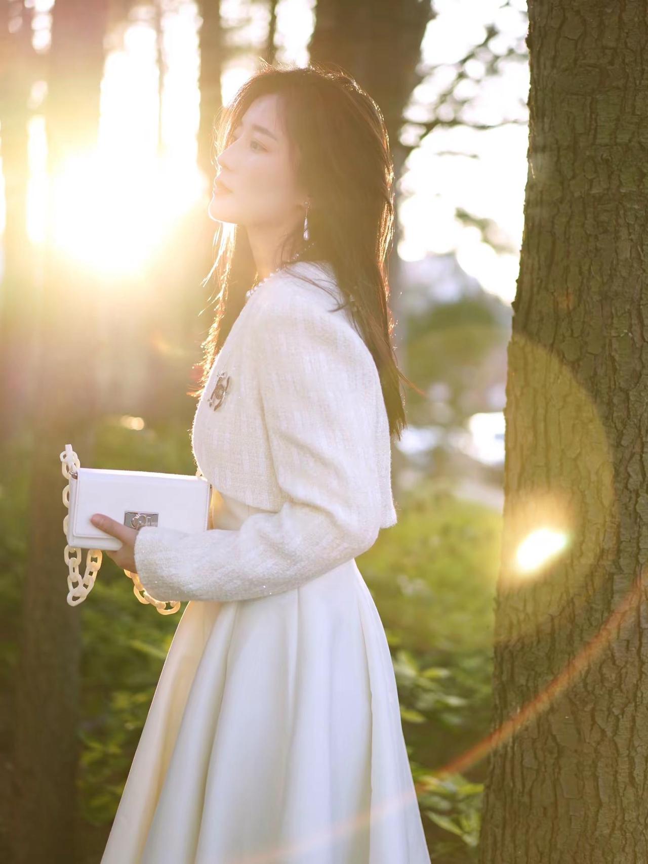 等等我先摆好造型 外景来一个 服装 露肩上衣 半身裙